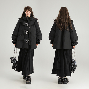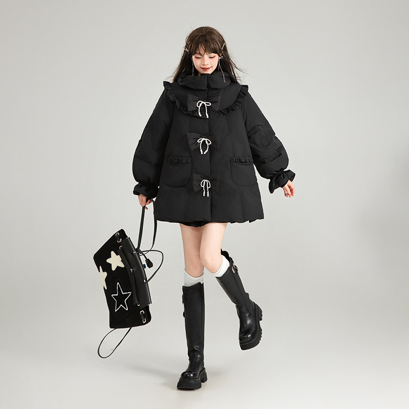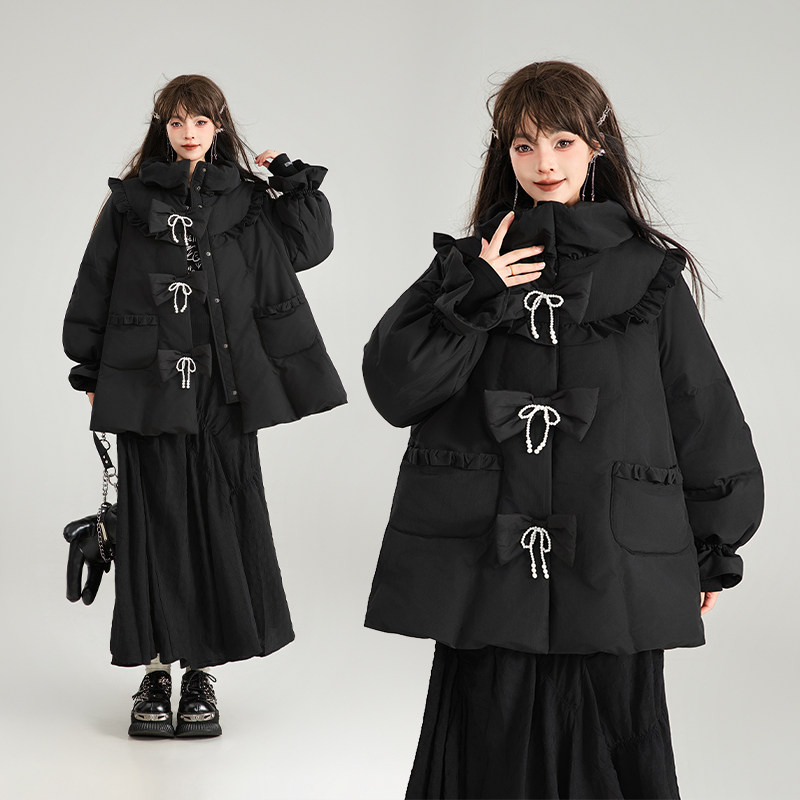 蝴蝶结饰加厚外套 黑色斗篷型羽绒服冬季 KEIKO 高克重229g白鸭绒