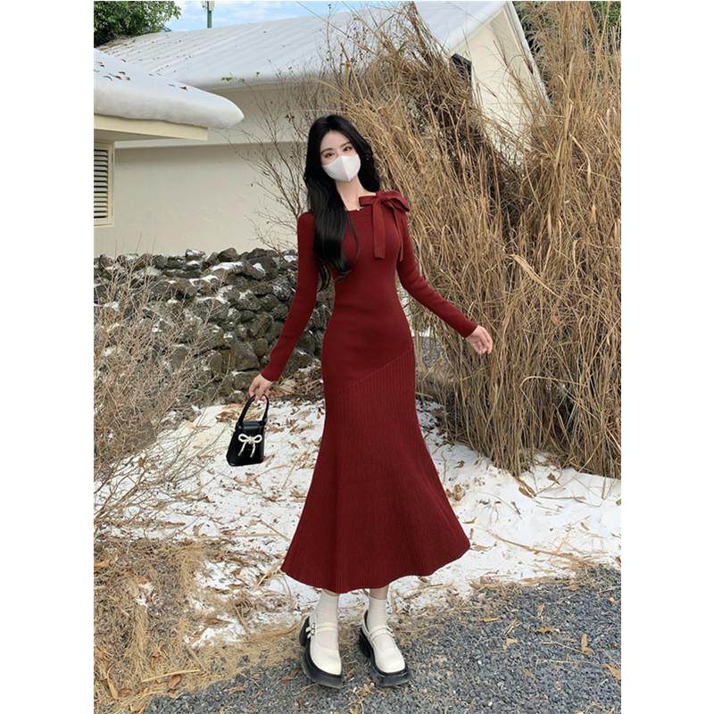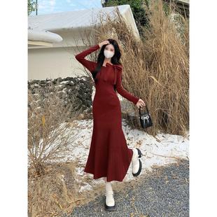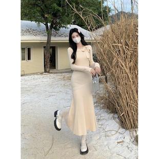 女拼接长款 百搭韩版 毛衣裙 店外贸品质针织连衣裙高级感时尚 Amy