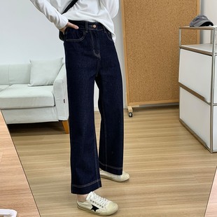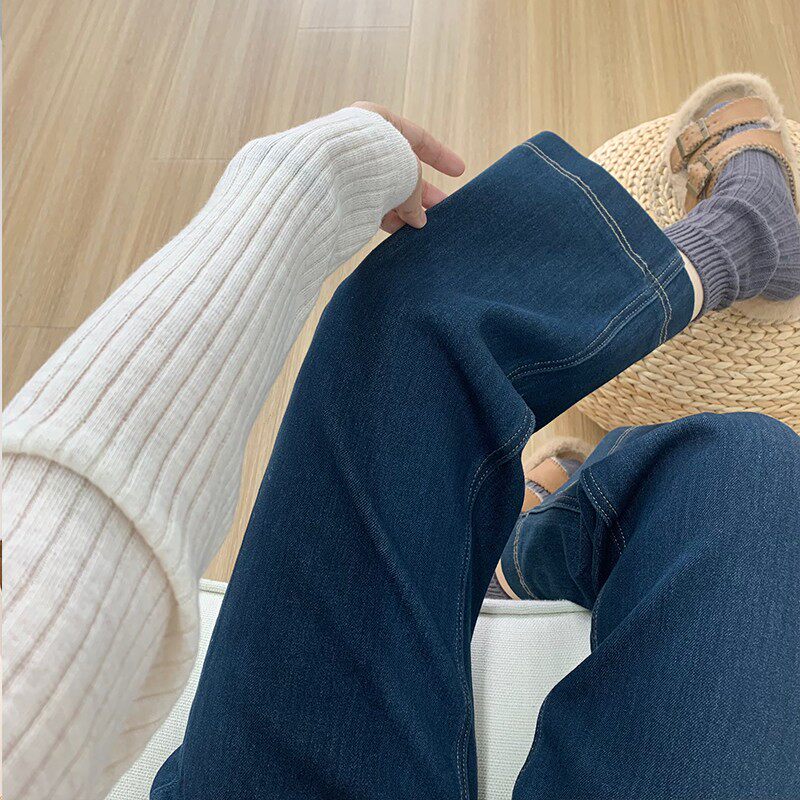 显瘦紧身弹力拖地喇叭裤 深蓝色加绒微喇牛仔裤 女2025秋冬高腰修身
