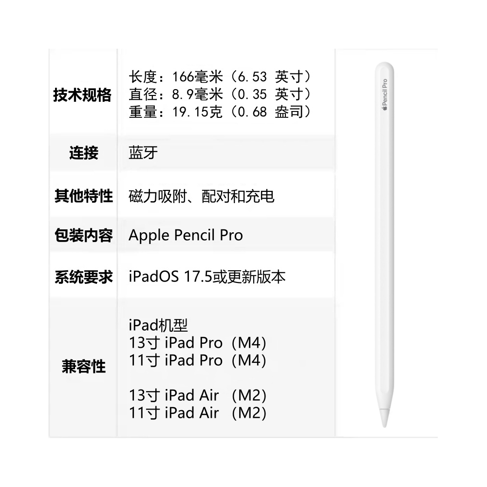 苹果Apple 磁吸充电新款 Pencil 重力压感笔 Pro绘画手写笔 2025款