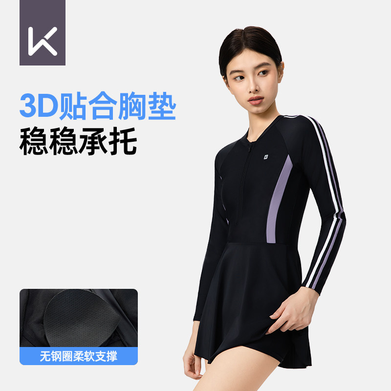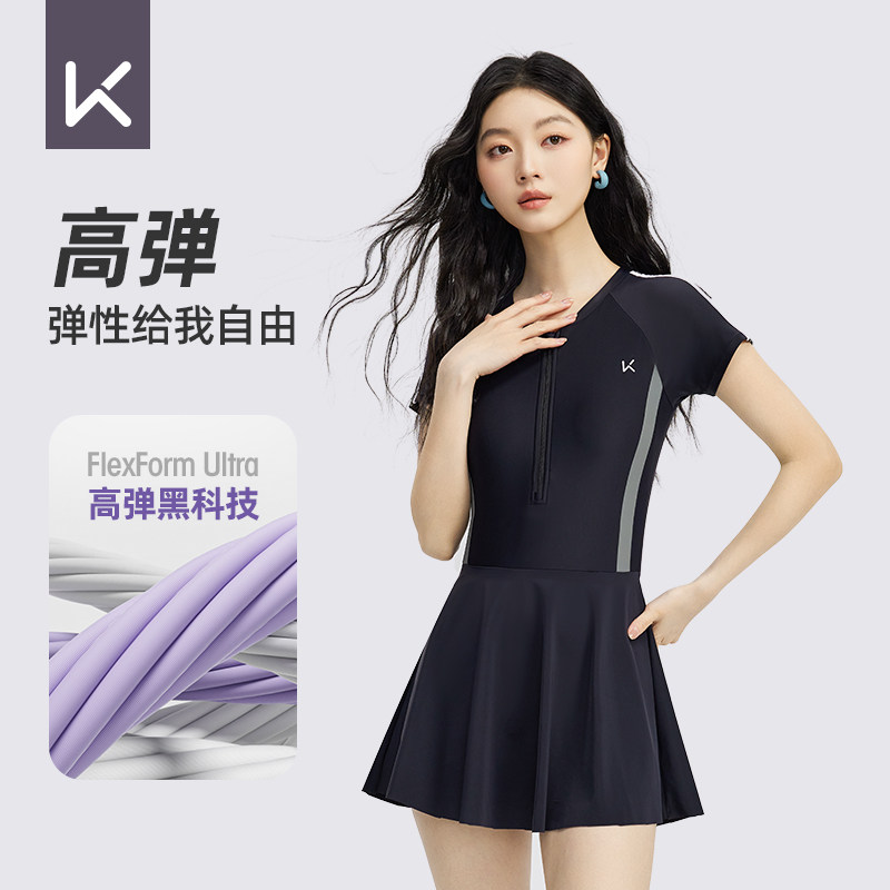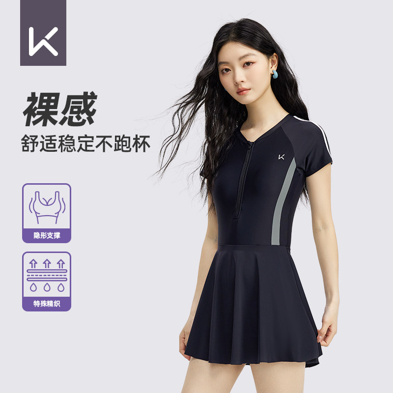 沙滩速干游泳衣专业大码 Keep泳衣女士2026新款 遮肚显瘦连体裙式