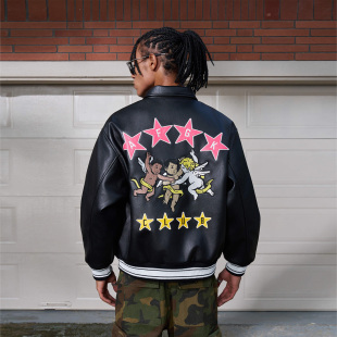 AFGK24FW星星天使贴皮刺绣皮衣国潮秋冬男女美式 复古机车夹克外套