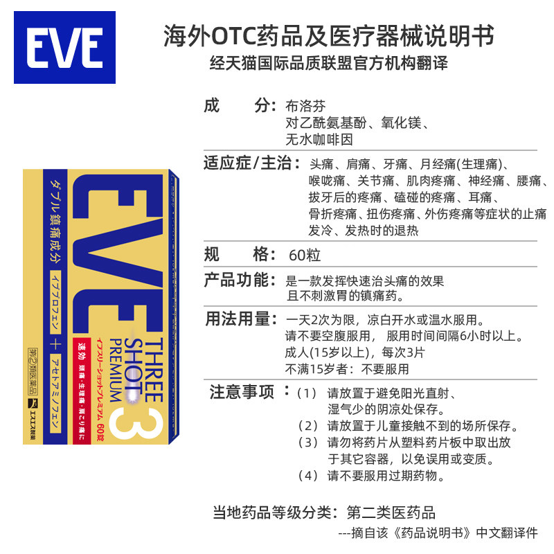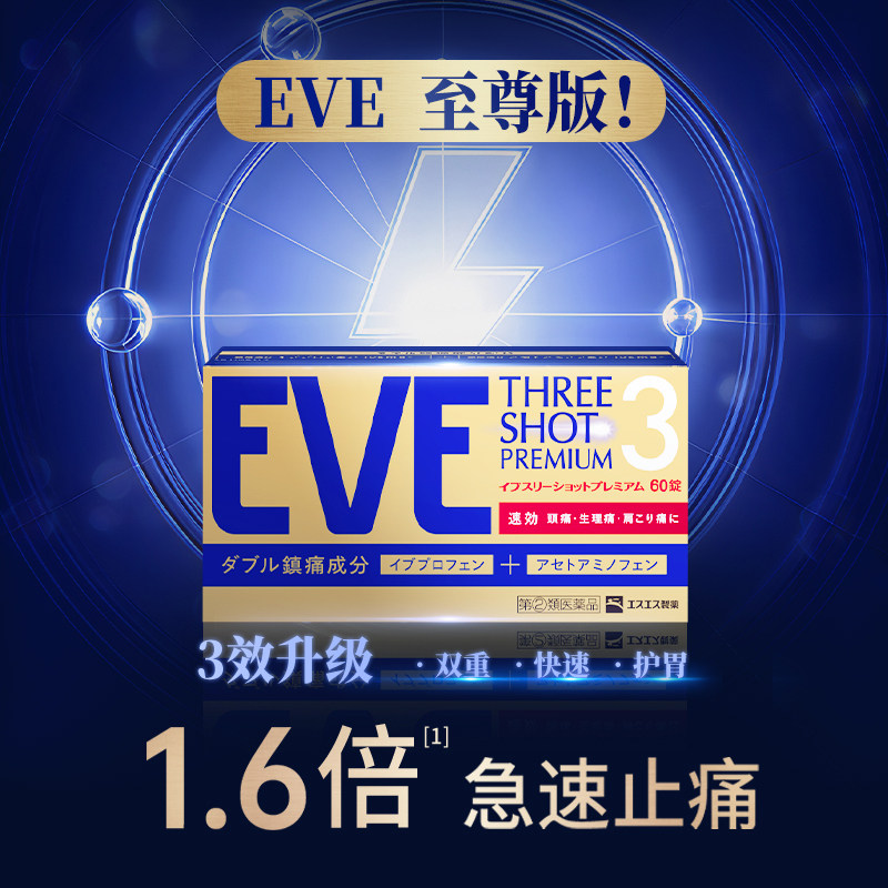 日本白兔EVE布洛芬止疼止痛药扑热息痛牙痛头痛退烧药退热散60粒
