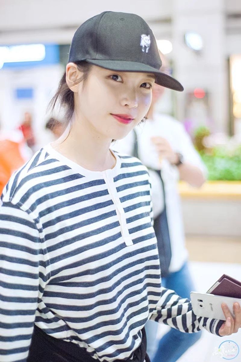条纹宽松T恤上衣打底衫 新圆领长袖 女生潮牌 秋季 IU李知恩机场同款