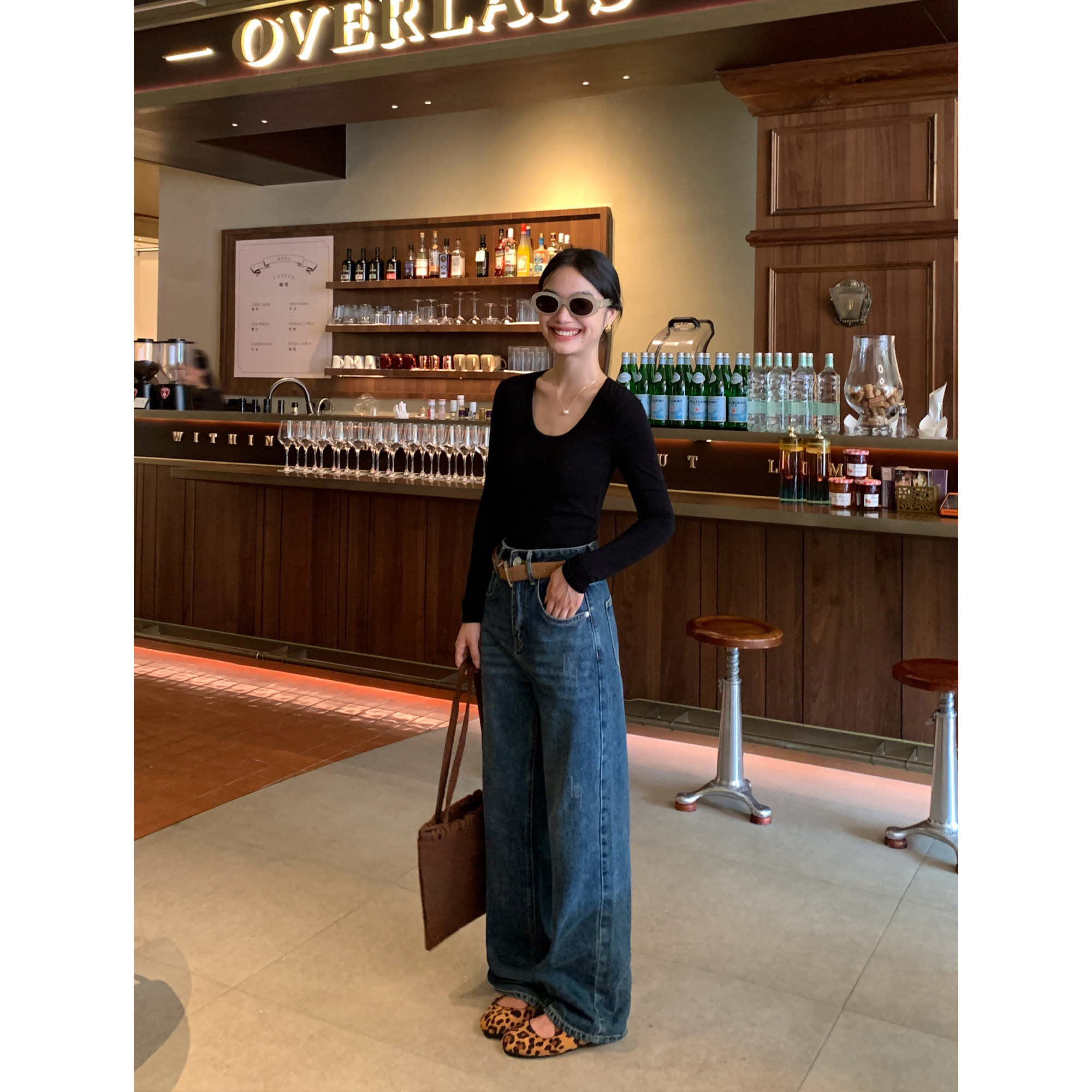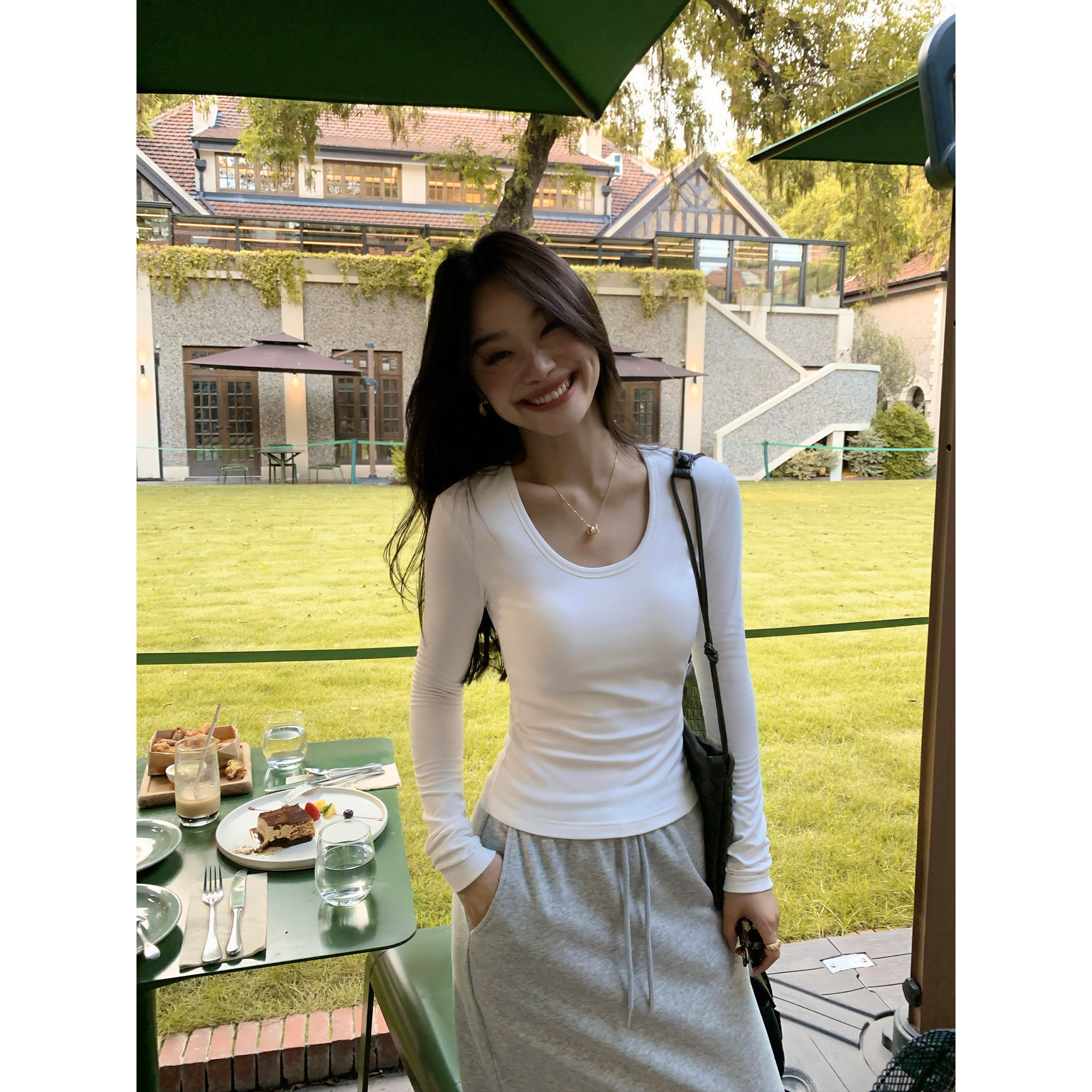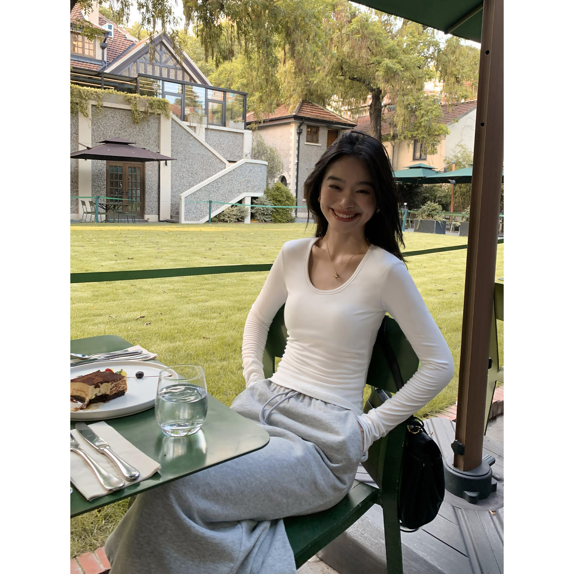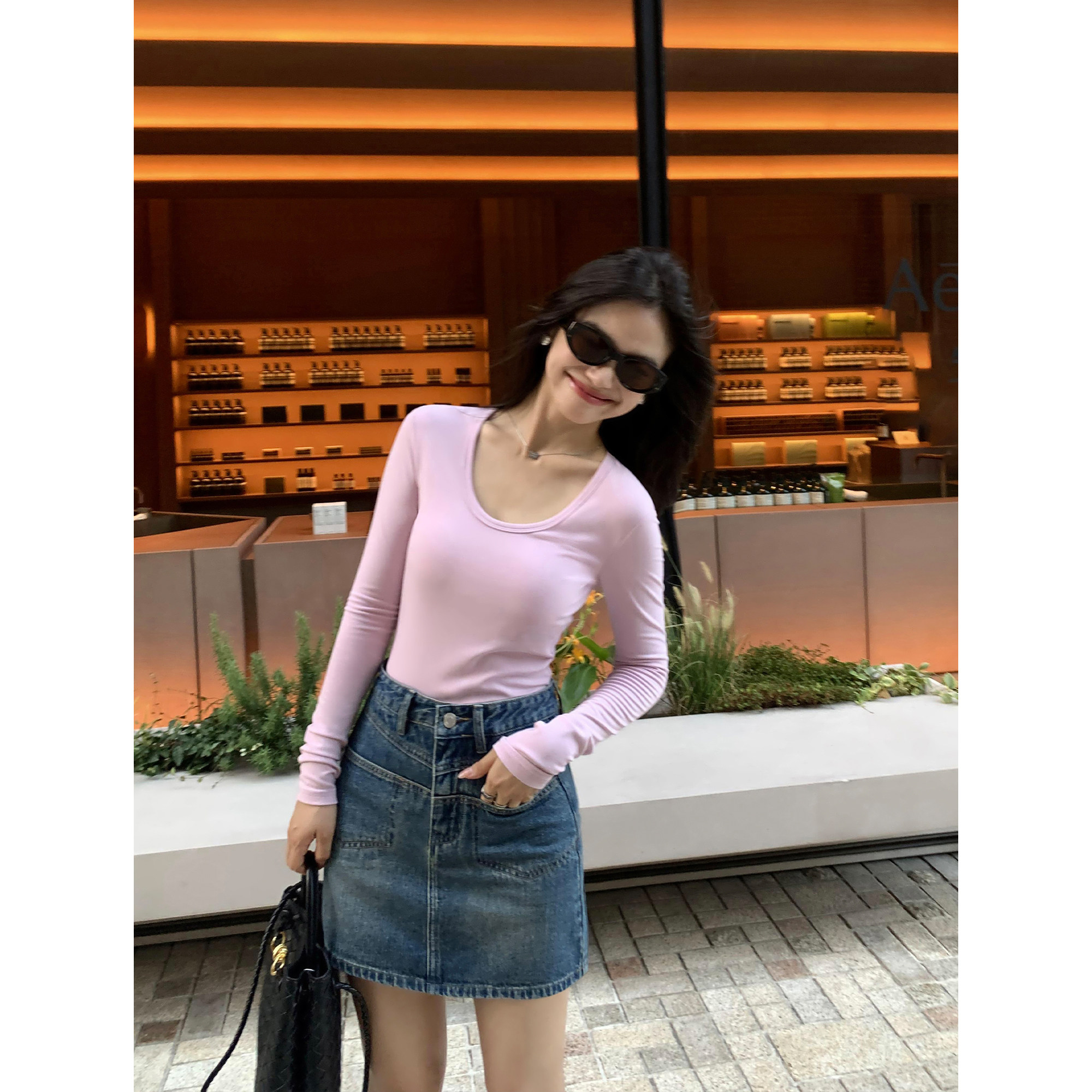 现货6.5折 内搭长袖 自在韵律 女修身 T恤 U领针织打底衫 pusumede