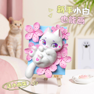 玩作手工浮雕diy装 饰画油彩数字油画小尺寸立体手绘画填充画画