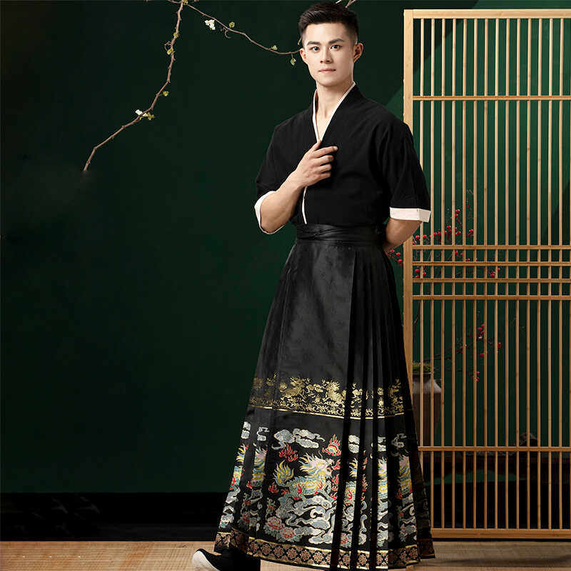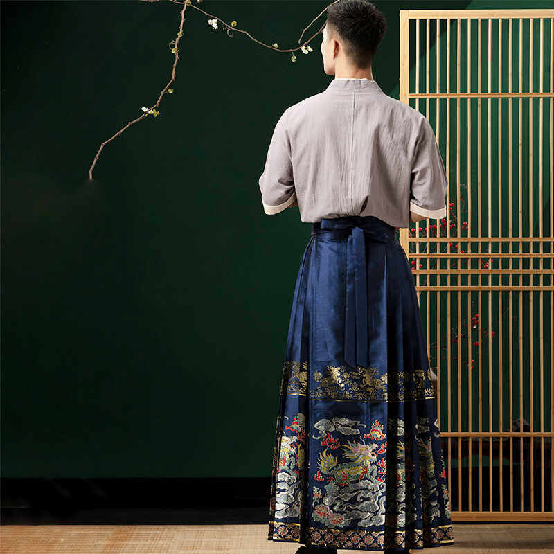 春夏款 汉服国风织金妆花高级感帅气成人日常裙裤 马面裙男款 新中式