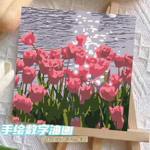 数字油画diy填色手工绘风景油彩充填花卉儿童简单丙烯涂鸦装 饰画