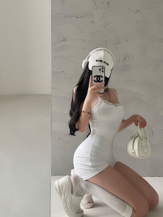 YoungGirlDay纯欲辣妹性感修身 显瘦肩带可调节蕾丝边吊带连体短裤