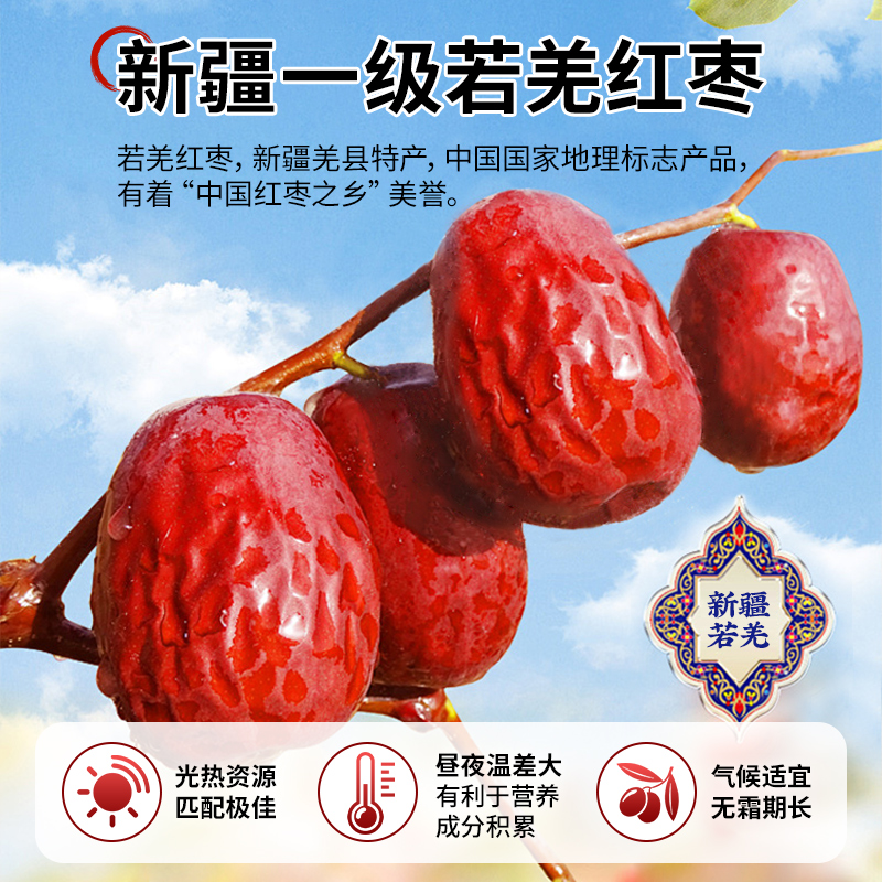 三蒸三晒红枣新疆特产若羌大枣无添加灰枣无核去核非独立包装 特级