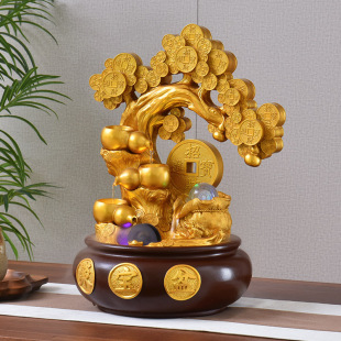 招财进宝流水摆件循环水装 饰风水轮喷泉客厅办公室景观开业礼物