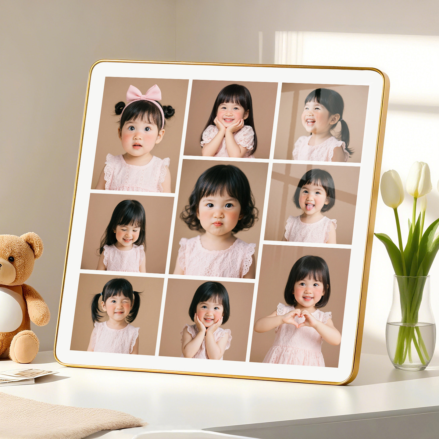 九宫格相框摆台照片定制挂墙做成相册框儿童宝宝水晶加打印洗相片