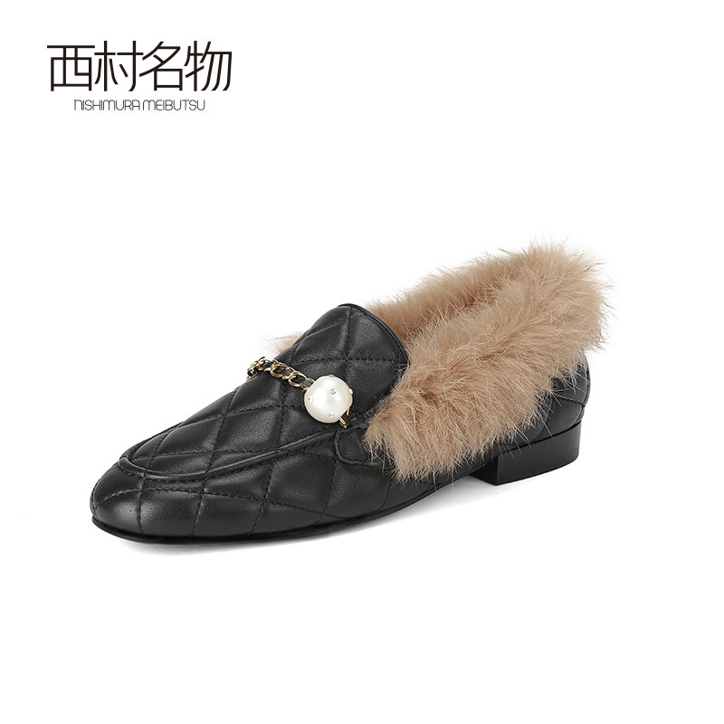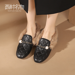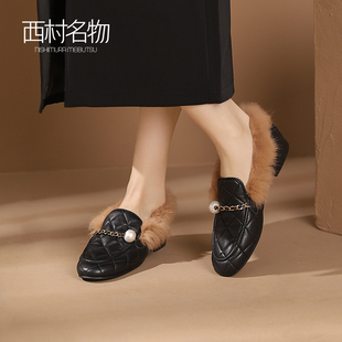 棉鞋 一脚蹬加绒单鞋 豆豆鞋 法式 外穿 西村名物冬季 小香风毛毛鞋 新款