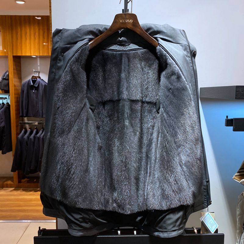 男士 2023冬装 百搭休闲 水貂脱卸内胆 皮草尼克服 灰色立领脱卸帽