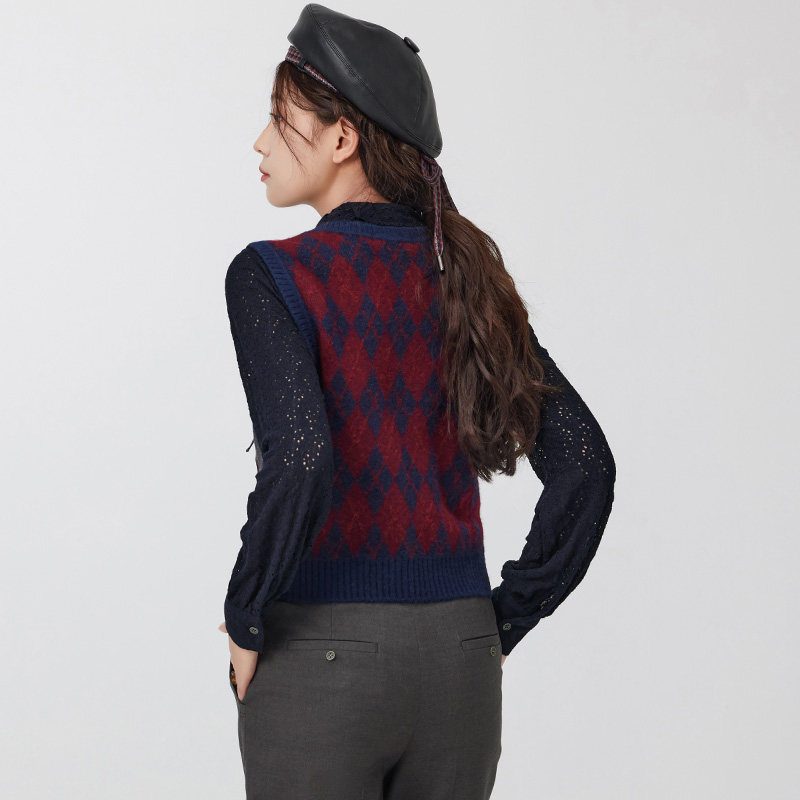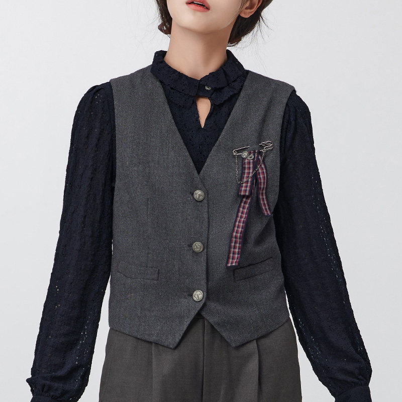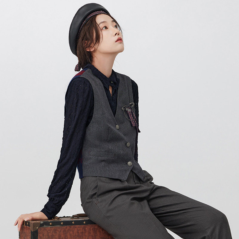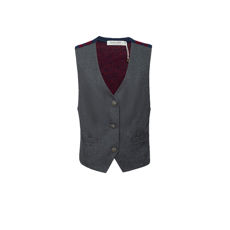复古帅气深灰拼菱格马甲DH234Q96631D 迪哈利新款 HARRY
