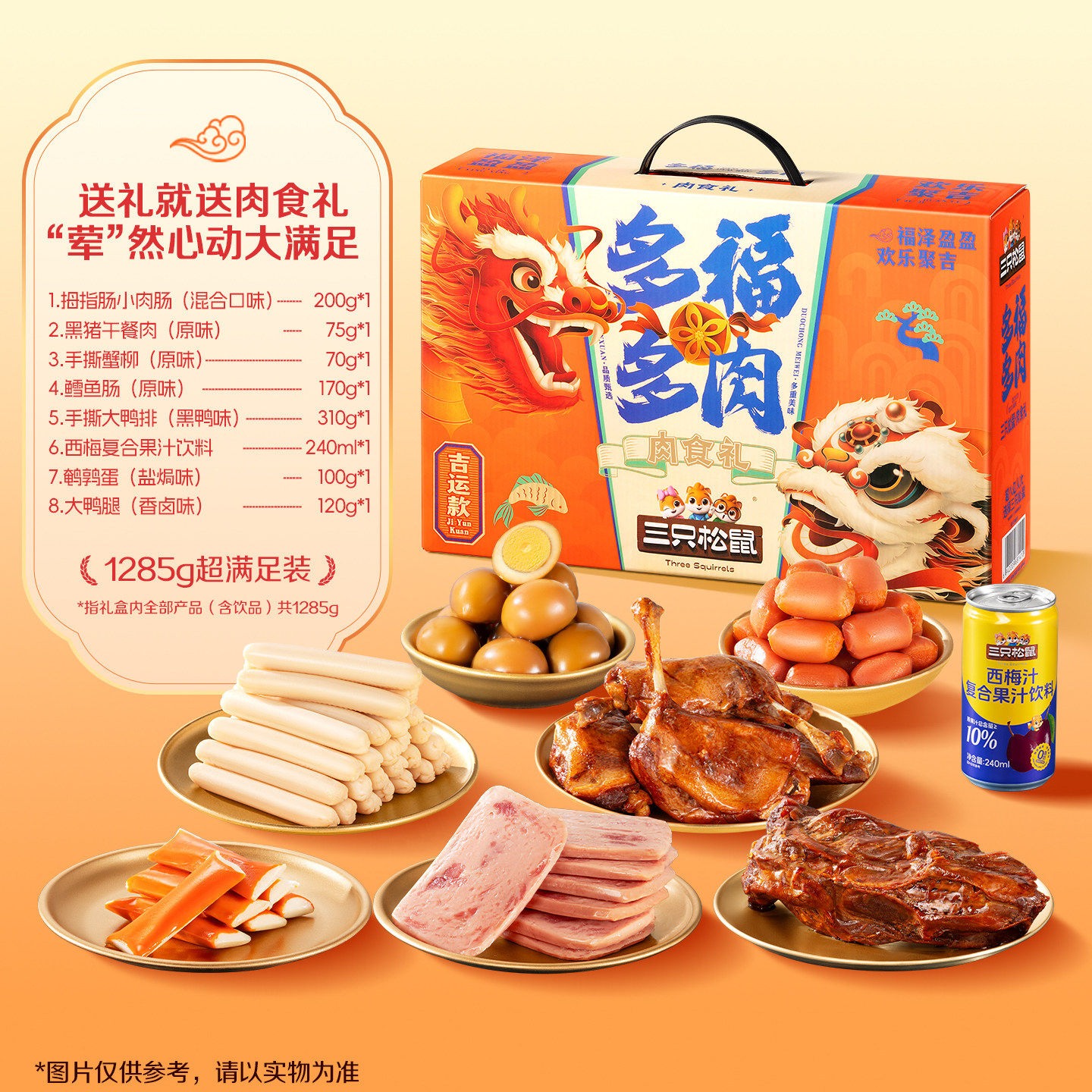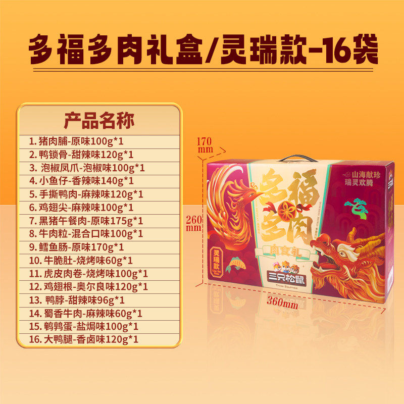 三只松鼠_全肉零食大礼包_牛肉鸭肉卤味熟食夜宵肉食类礼盒熟即食