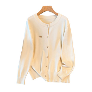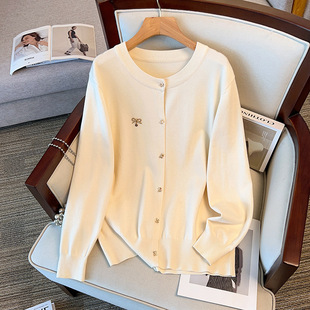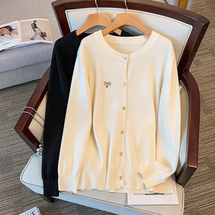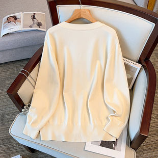 300特大码 女200斤胖mm秋冬圆领简约上衣宽松显瘦毛衣外套 针织开衫