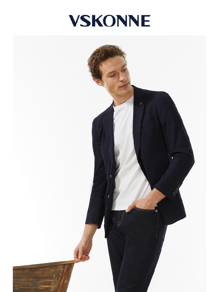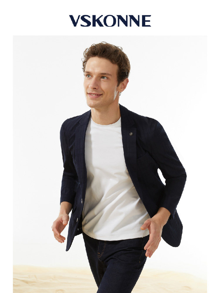 外套 休闲小西装 VSKONNE威斯康尼男休闲西服春商场同款 藏青色修身