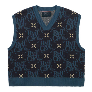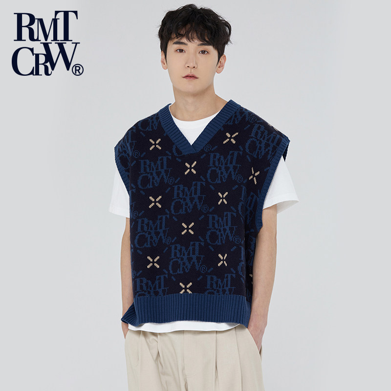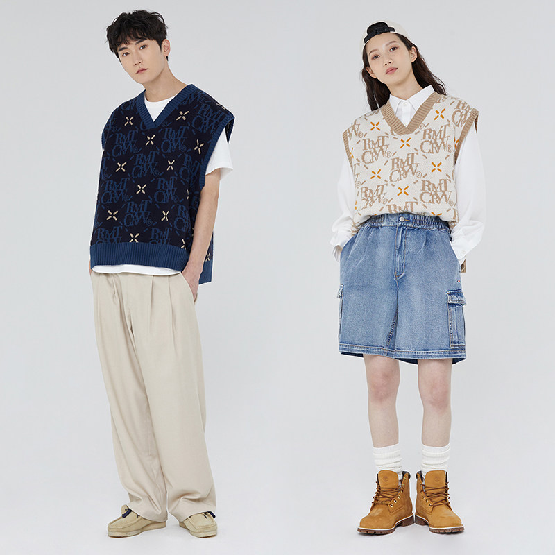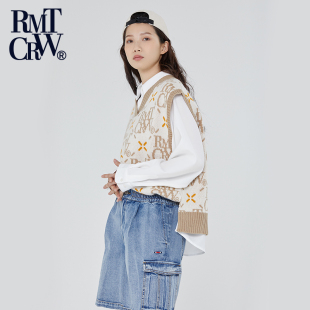 菱形花纹logo针织马甲落肩款 新款 V领百搭背心 春季 RomanticCrown