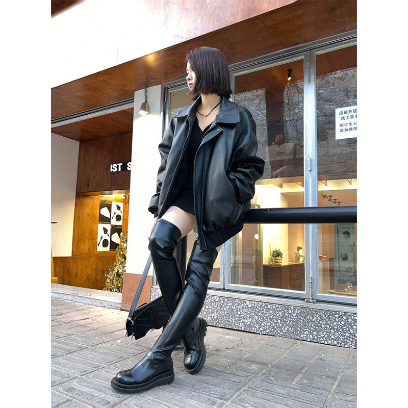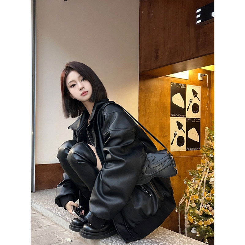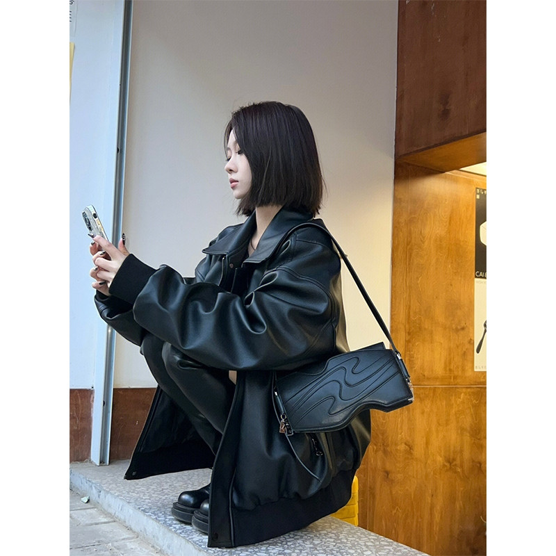 春秋学生pu皮黑色皮夹克外套女美式 复古高级感显瘦机车上衣ins潮