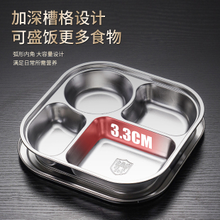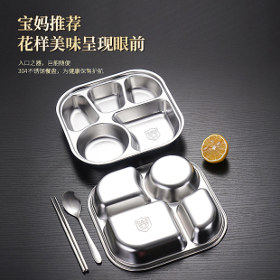 304不锈钢成人三格餐盘分格家用餐具食堂大人快餐盘碗筷勺套装