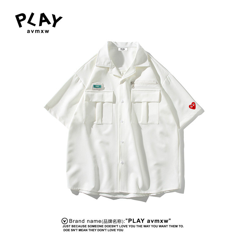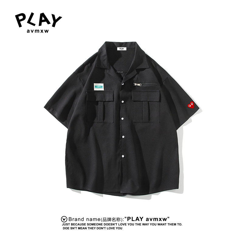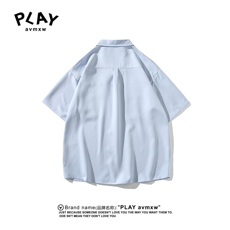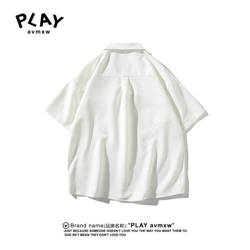 2025年夏季 官方衬衫 新款 情侣潮牌纯色冰丝翻领短袖 PLAY 衫 AVMXW