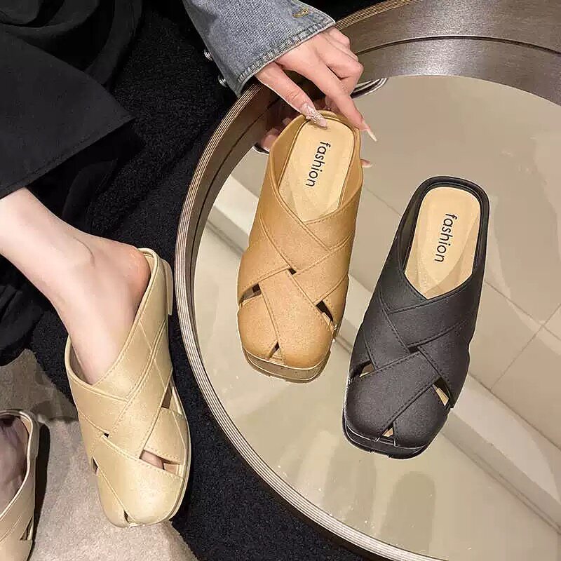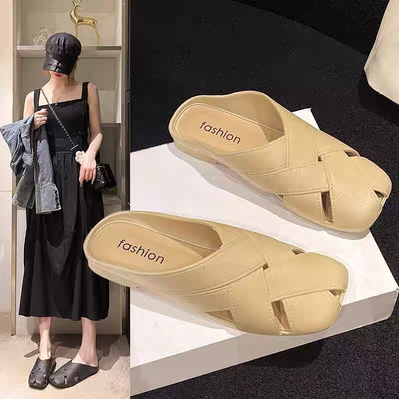 百搭休闲包头凉拖舒适防滑软底懒人一脚蹬半拖鞋 新款 圆头复古时尚