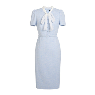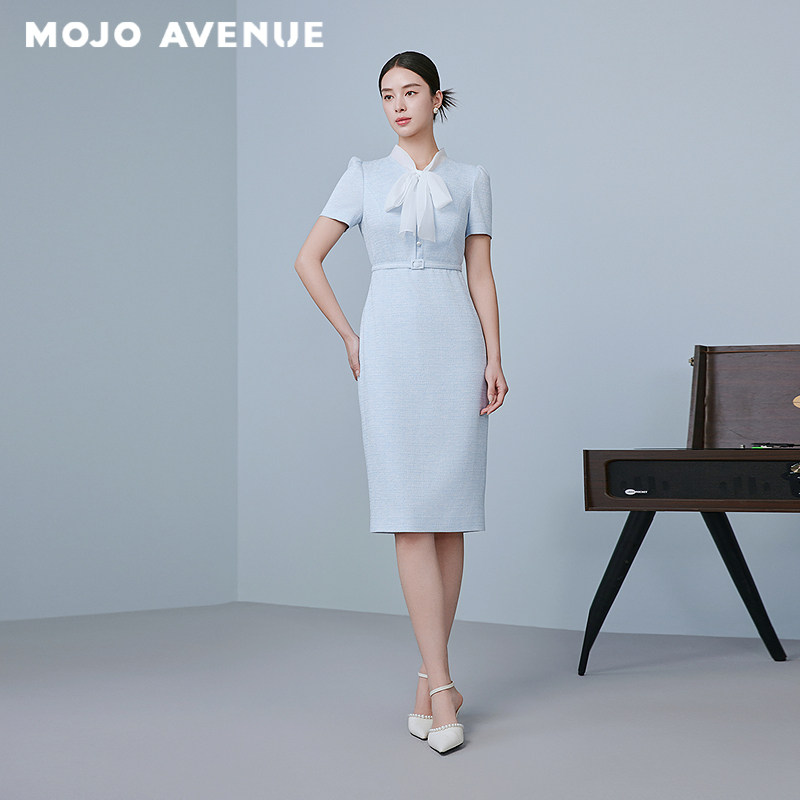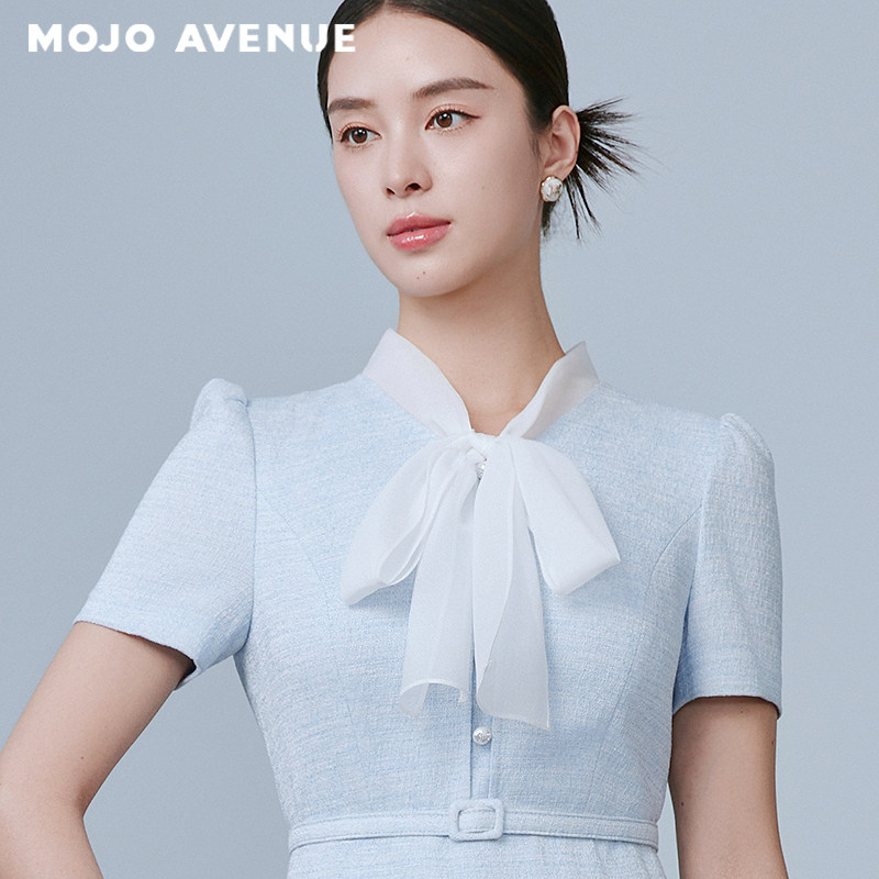 时尚 连衣裙夏季 高腰裙 MOJOAVENUE优雅飘带领修身 朗姿