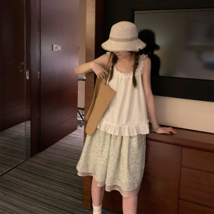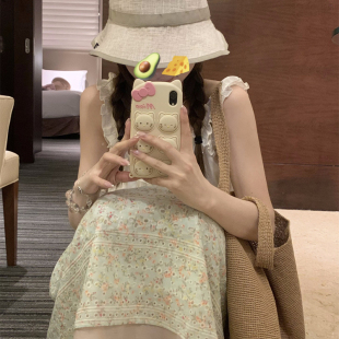 TheDouerr 糖渍青梨碎花刺绣拼色松紧腰半裙