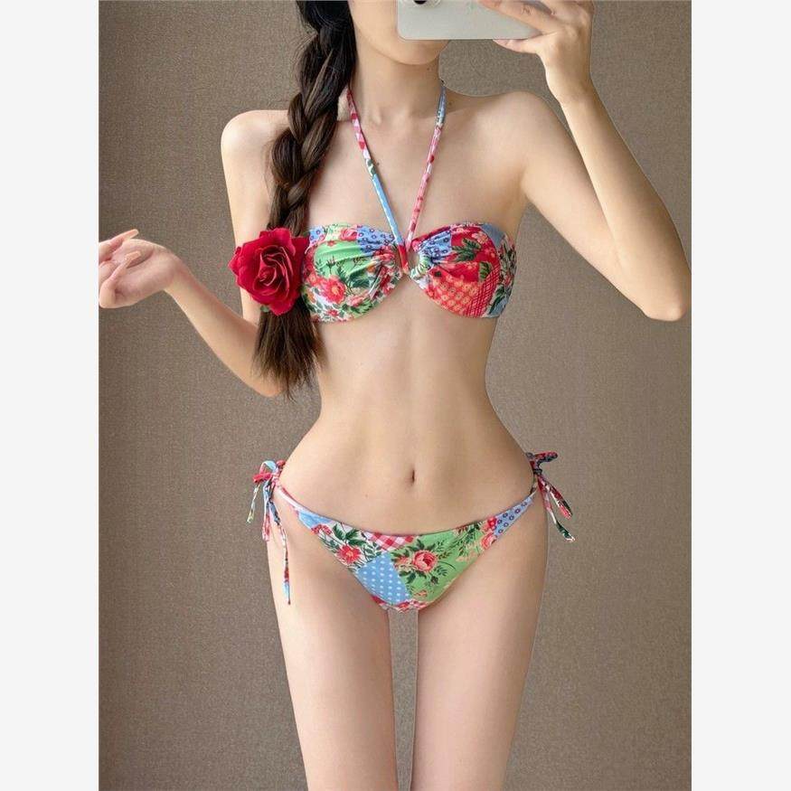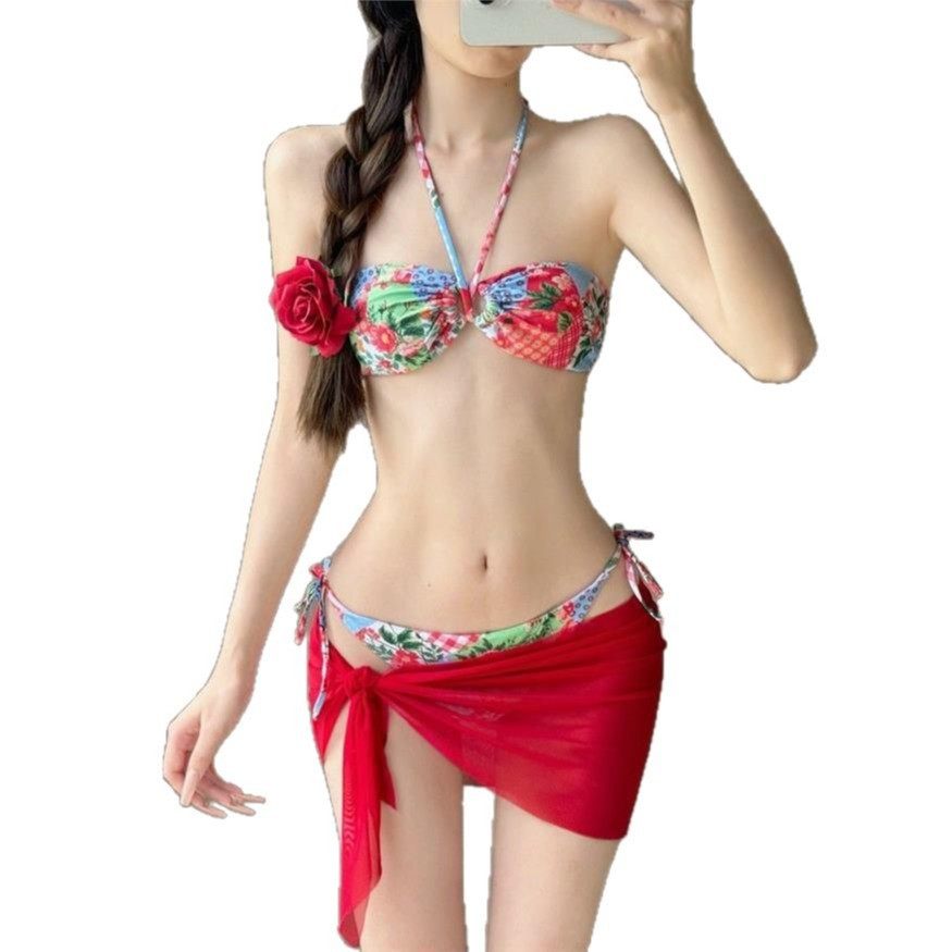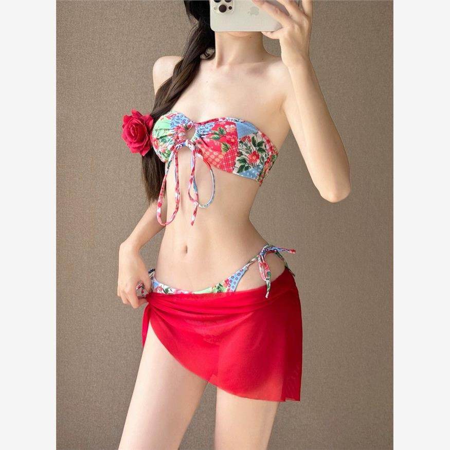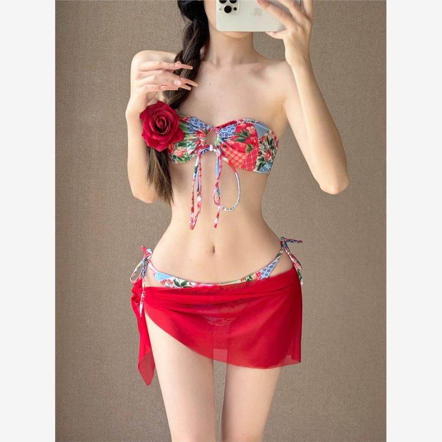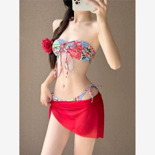 韩国ins纯欲风小胸聚拢显瘦性感抹胸分体裙式 比基尼泳衣度假泳装