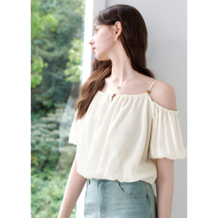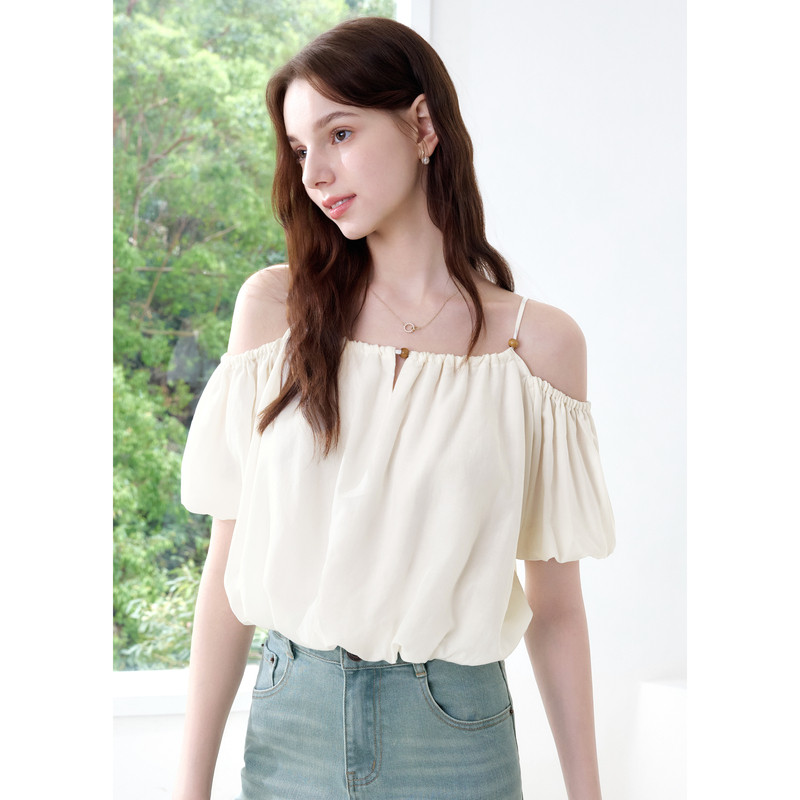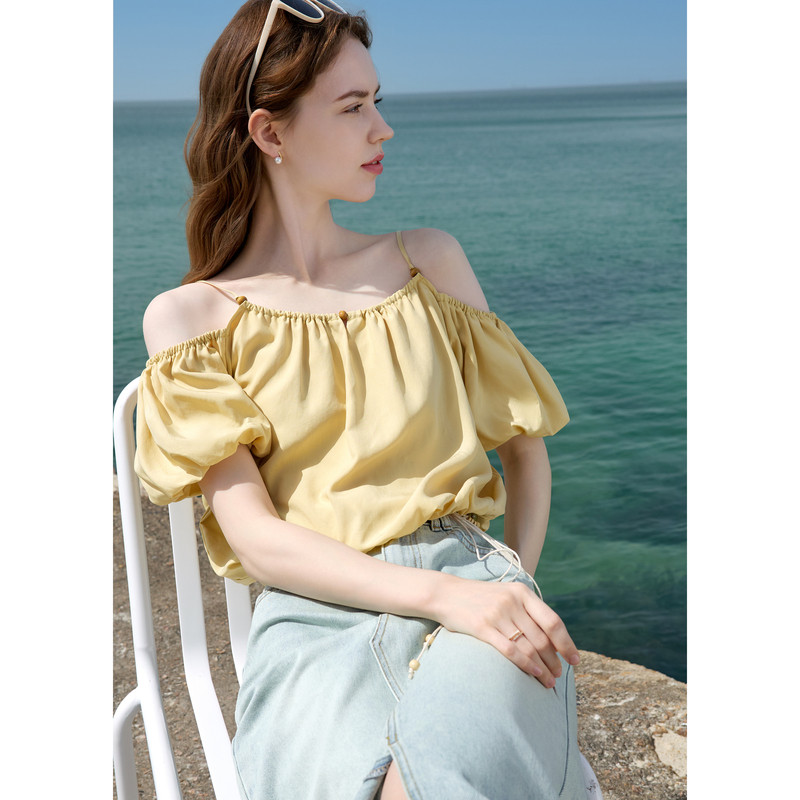 柠檬海盐露肩衬衣 新款 betu百图南法假日泡芙云朵衬衫 女2025年夏季