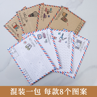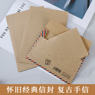 感祝福表白手写信笺贺卡明信片 文艺邮票信封袋书信纸学生日仪式 可邮寄航空信封复古牛皮纸信封信纸套装 欧式