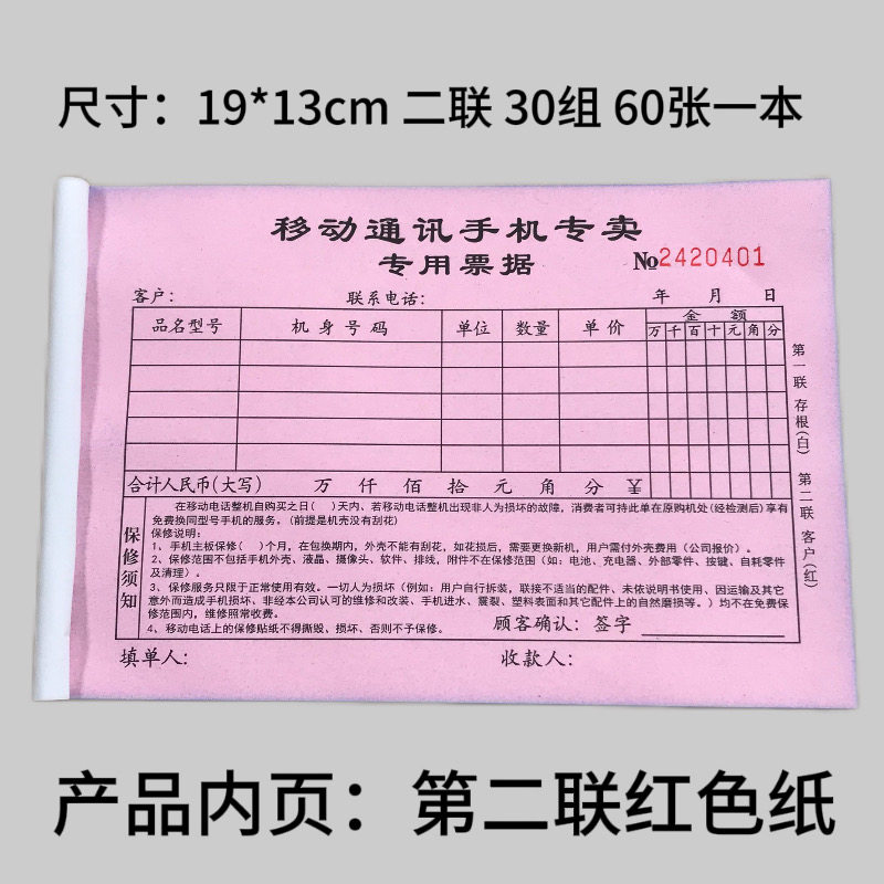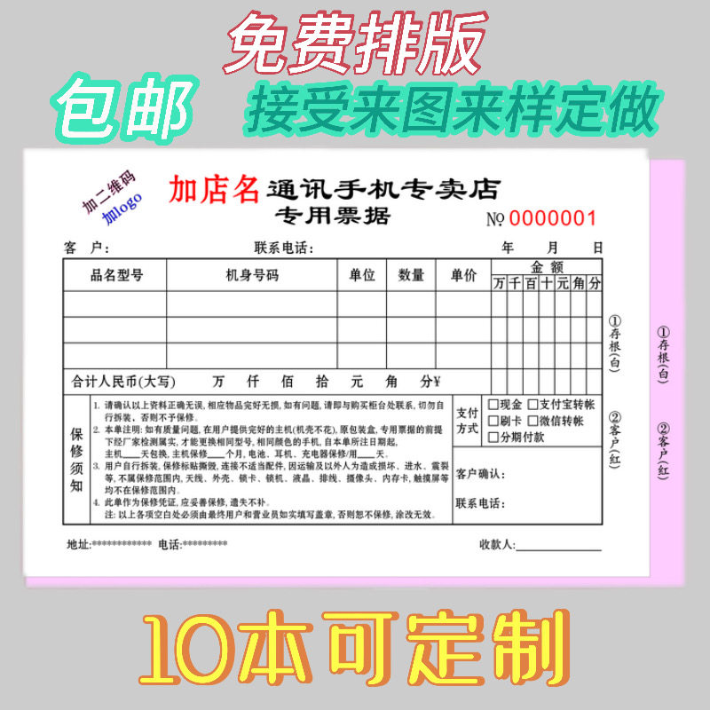 手机销售专用票据收据二联定做销售单维修单据印刷定制销送货清单