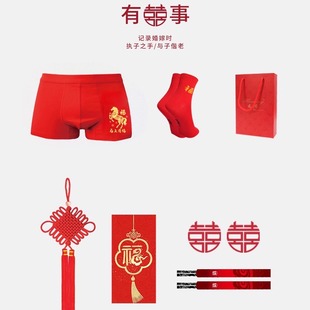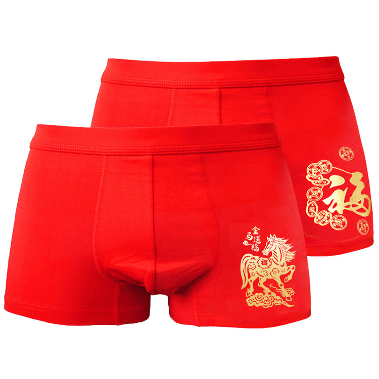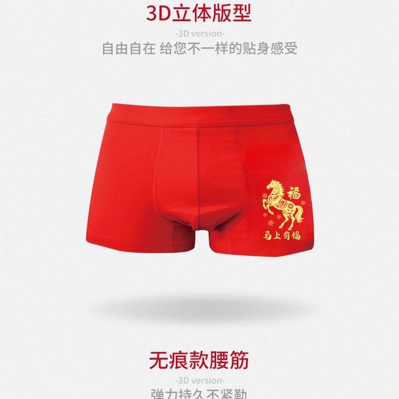红色内裤 属马红内裤 莫代尔男士 平角短裤 袜子 男本命年马年结婚大码
