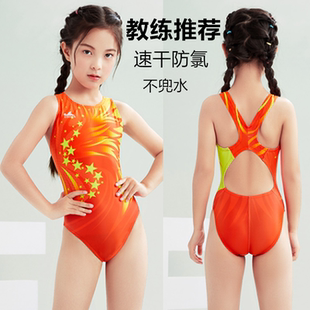 英发儿童泳衣速干防氯专业训练女孩大童连体三角比赛竞速运动泳衣