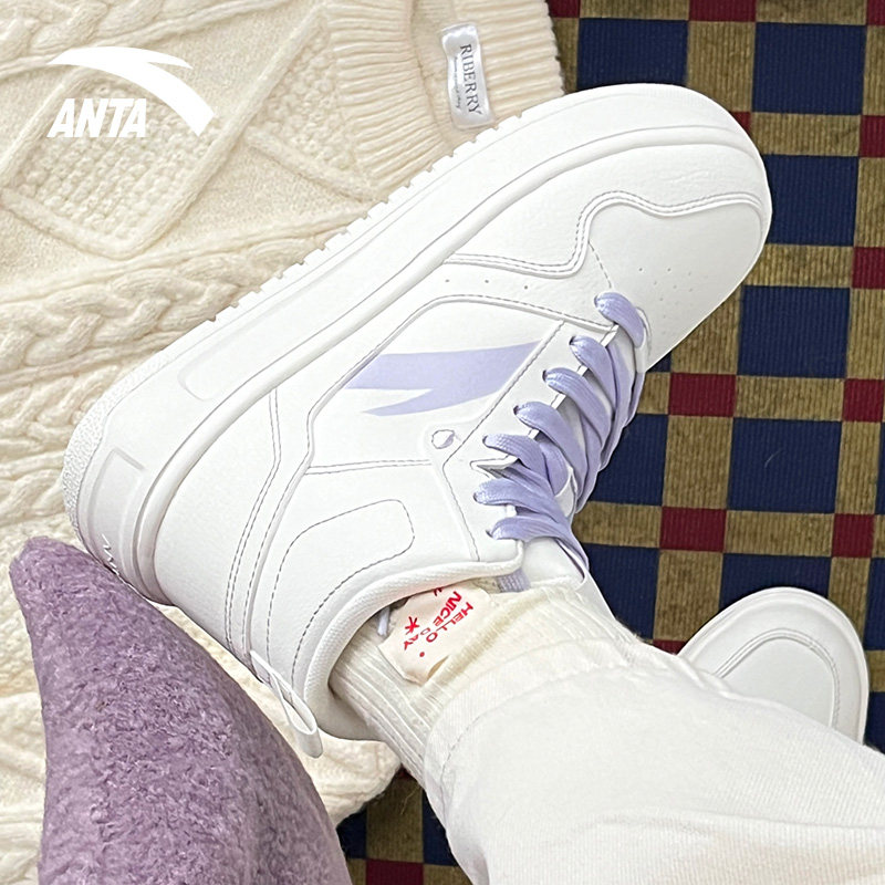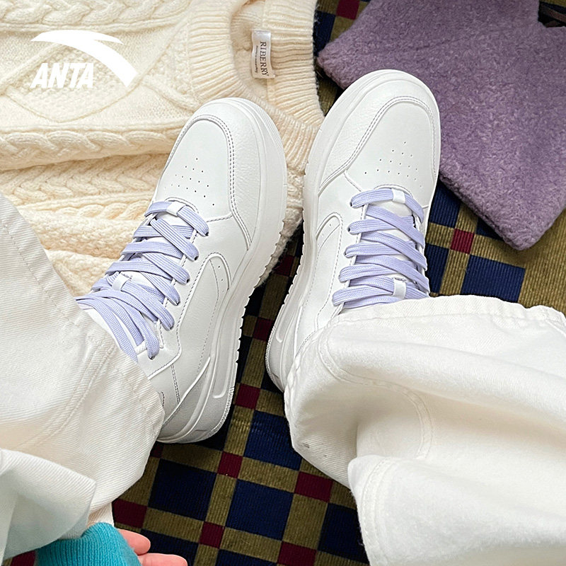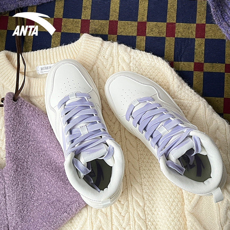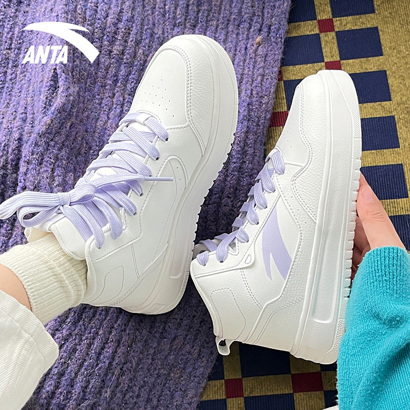 女2024冬季 皮面保暖鞋 新款 运动鞋 轻质厚底增高小白鞋 安踏高帮板鞋