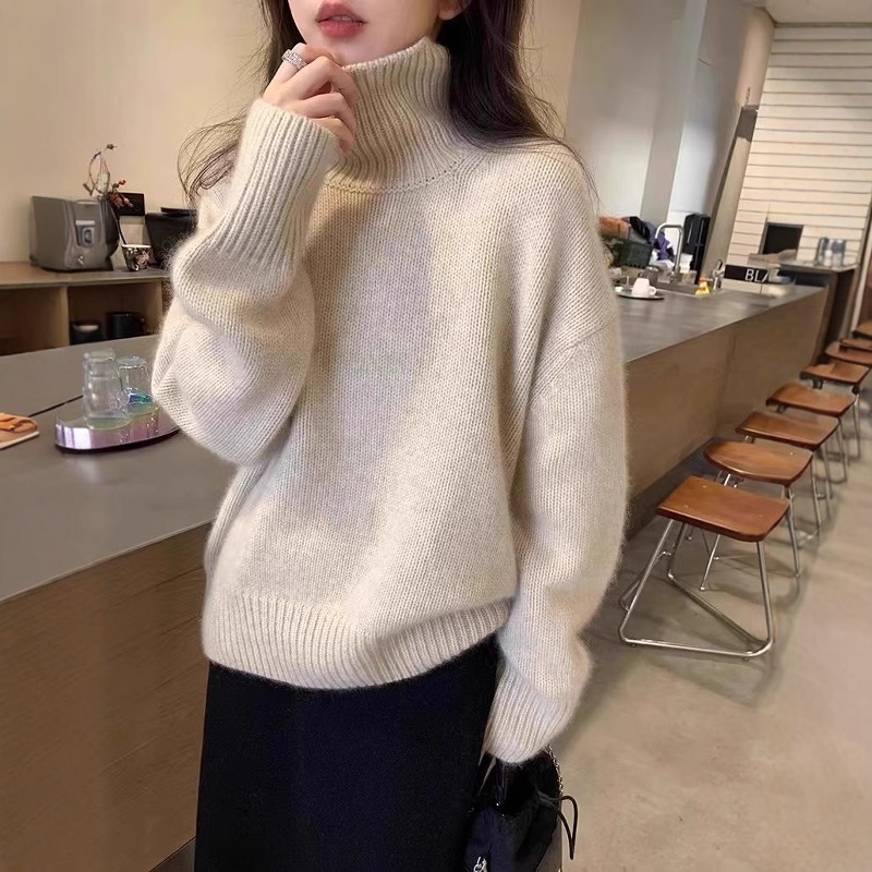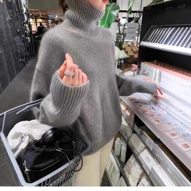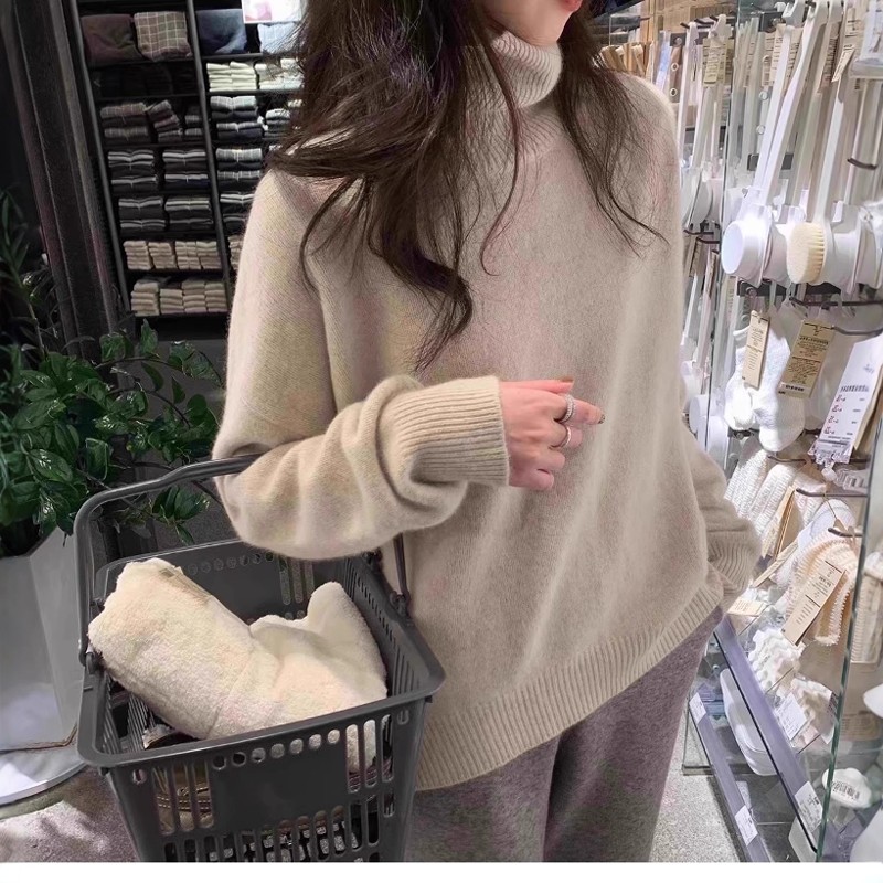 秋冬堆堆高领针织打底宽松毛衣羊毛衫 100%纯羊绒衫 毛衫 女 断码
