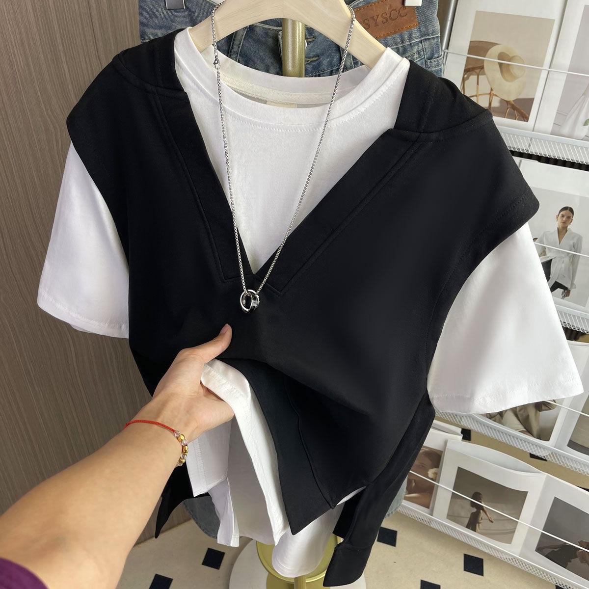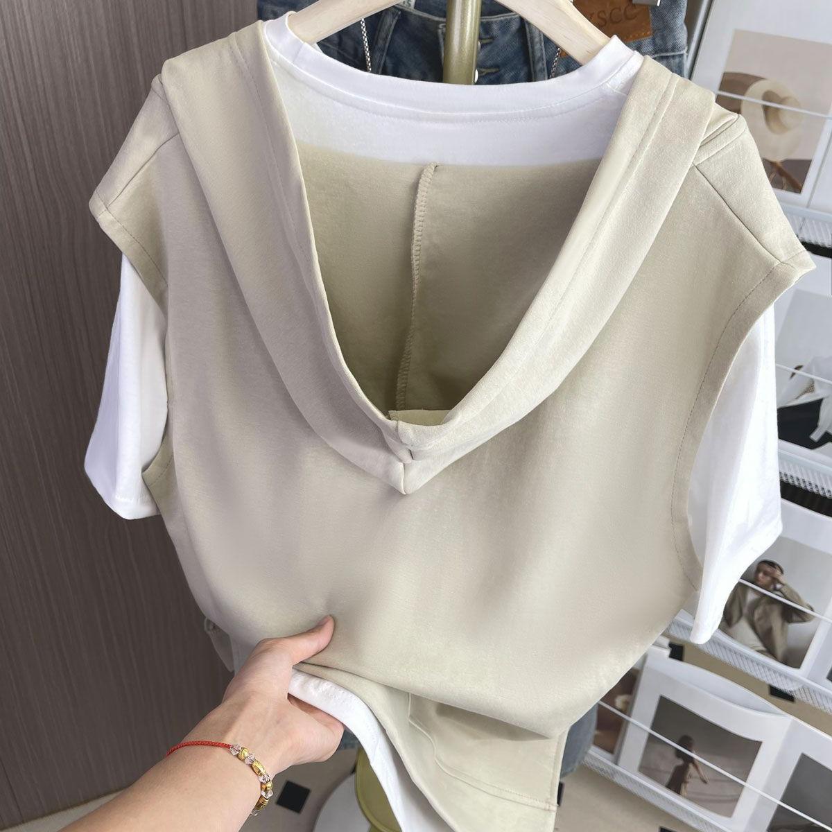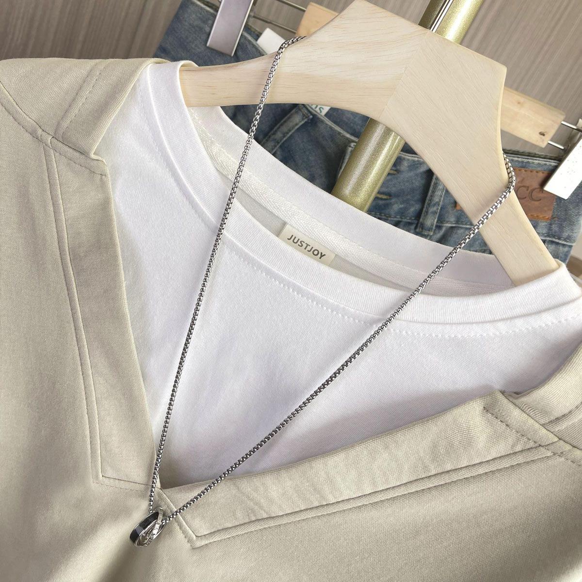 原创21支210g精梳纯棉美式 T恤男女宽松上衣夏 潮牌真两件连帽短袖