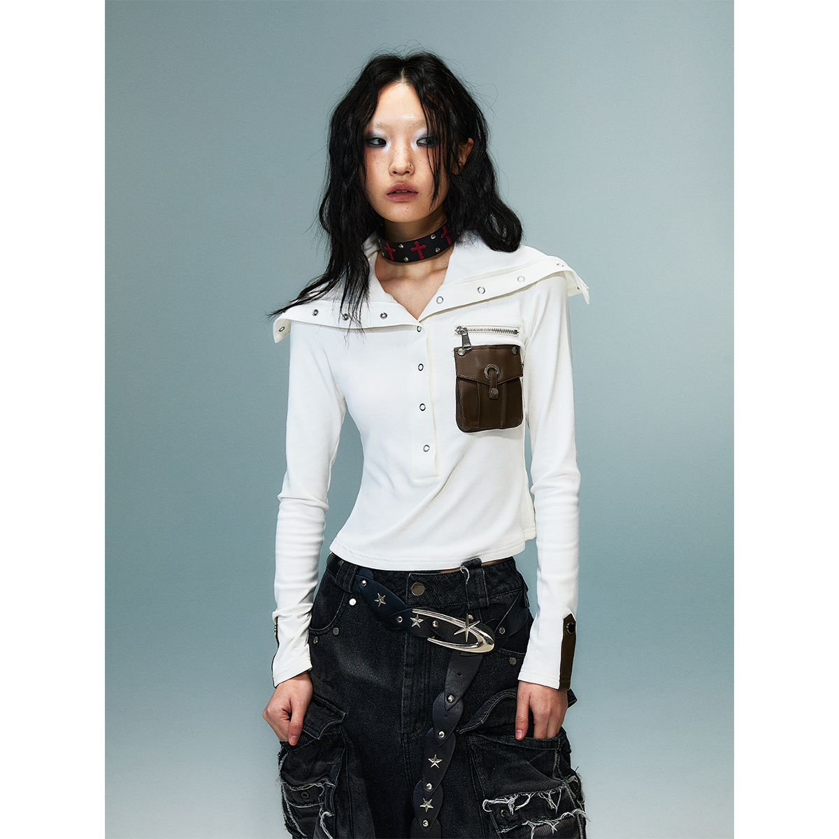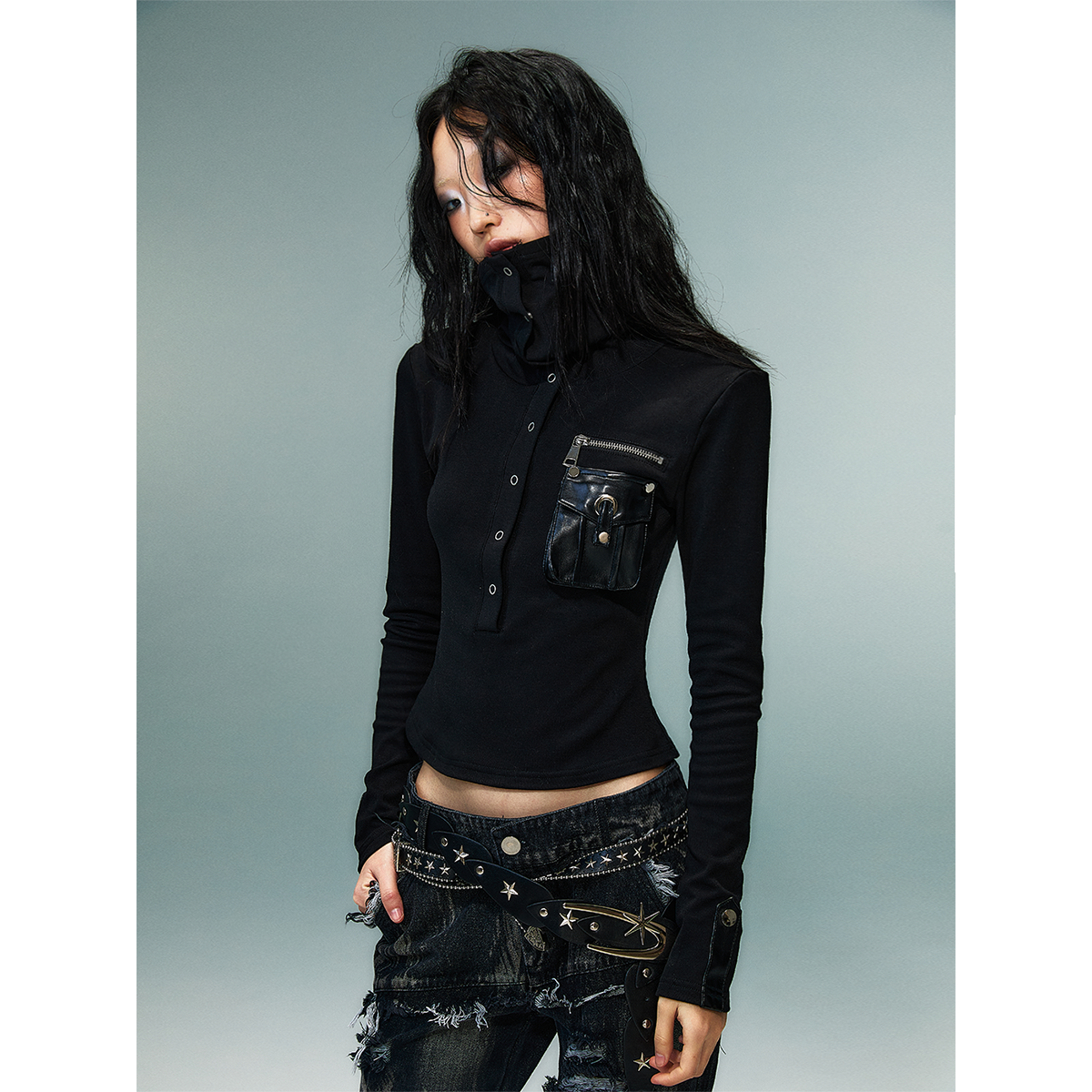 打底衫 长袖 上衣 显瘦针织衫 失落后花园暗黑朋克高领翻领多穿法修身