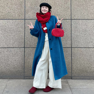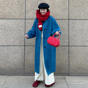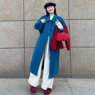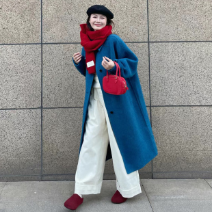 毛呢外套 jk原创日系学院风正肩牛角扣大衣加厚中长款 阿车家 大码