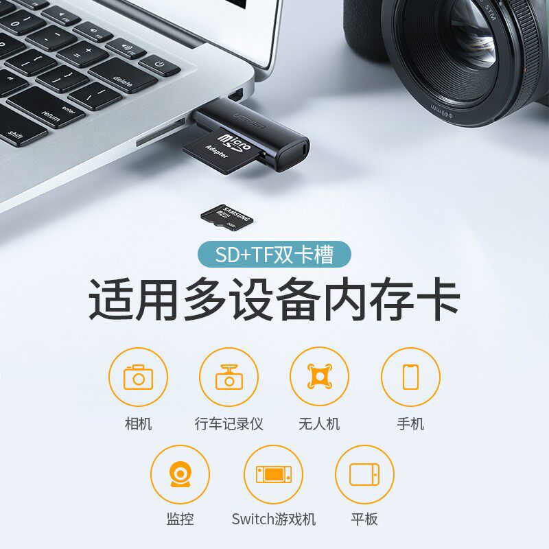 绿联ugreen读卡器相机sd卡tf卡二合一万能usb3.0高速读取转换器行