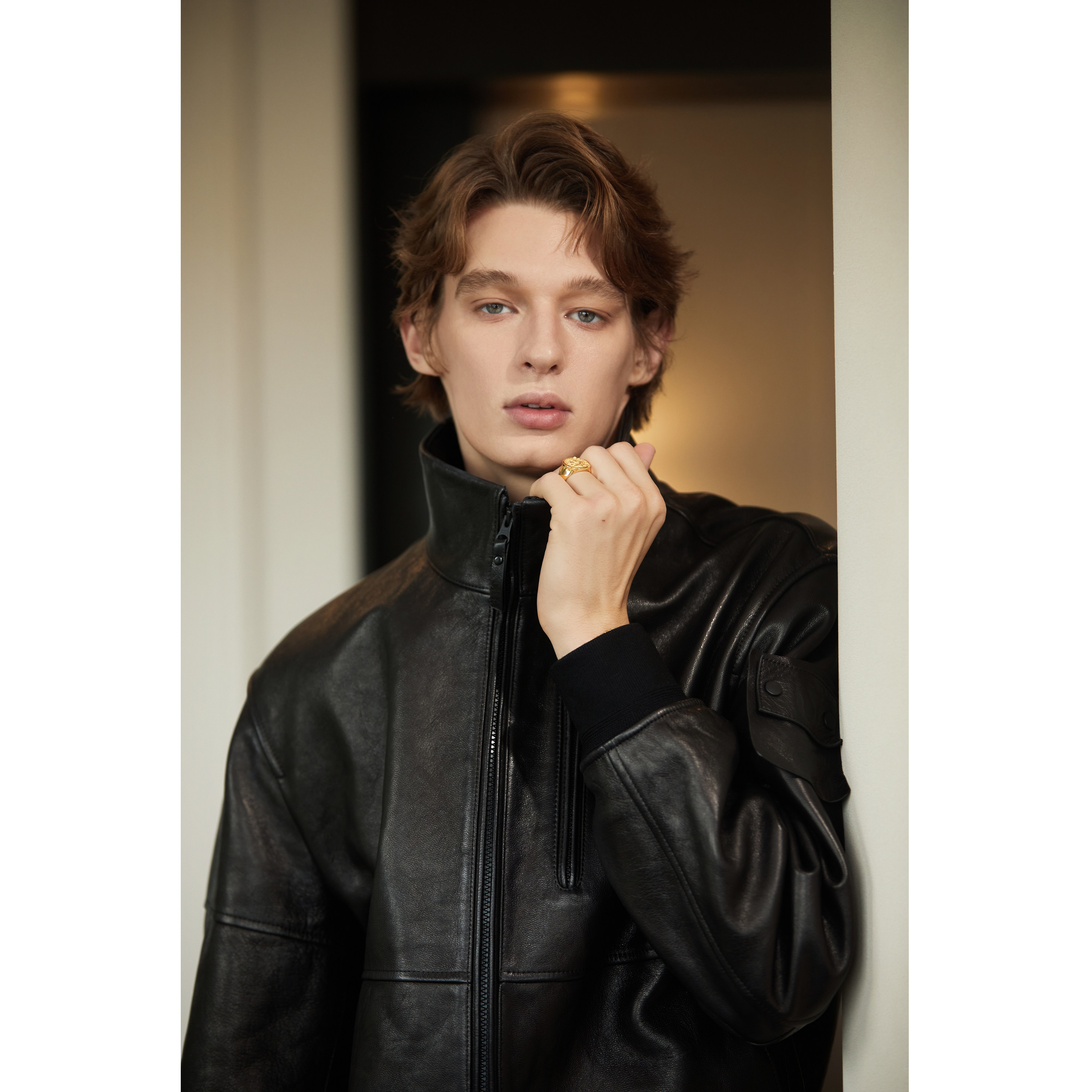 春秋时尚 皮衣石头岛男士 外套 双层山羊真皮夹克立领阔版 特叔黑标