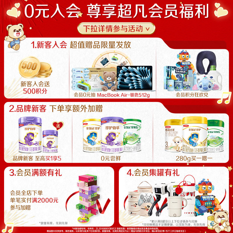 伊利金领冠基础育护1段0 2罐 6个月新生宝宝婴儿DHA牛奶粉900g