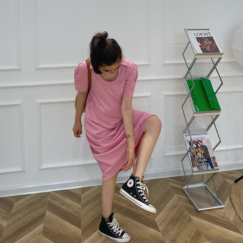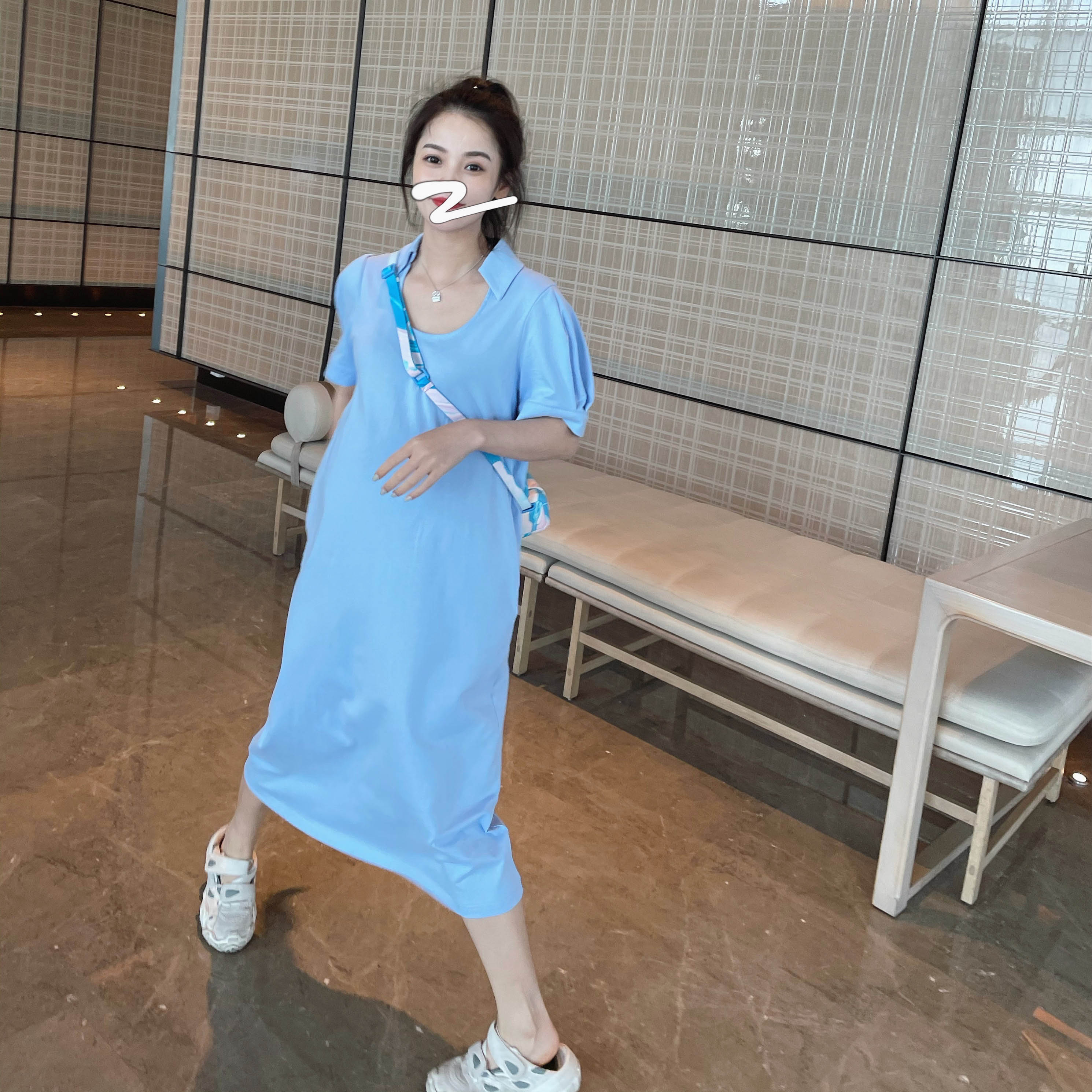 纯色时尚 中长款 洋气潮妈连衣裙气质 U领纯棉修身 LeoMami孕妇夏装
