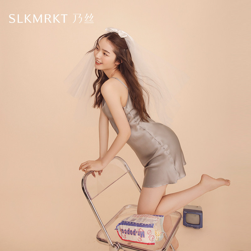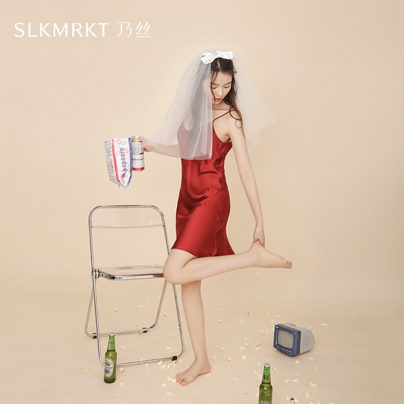 今夕何夕性感睡衣女秋冬季 蕾丝纯欲风带胸垫冰丝吊带睡裙 2025新款