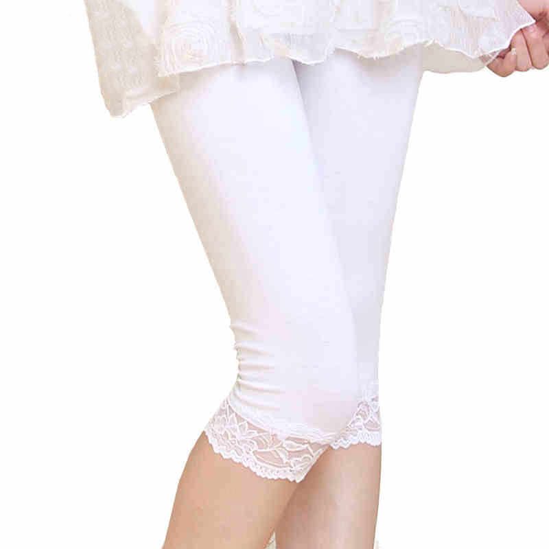 肤胖mm外穿 7分裤 夏薄蕾丝边显瘦莫代尔七分打底裤 女肉色高腰大码