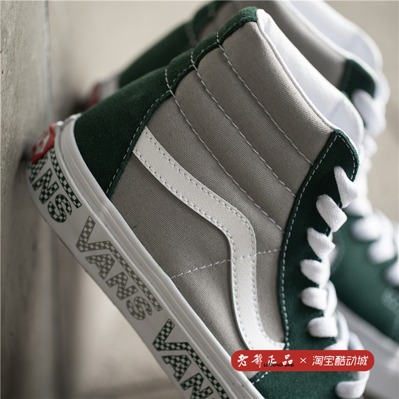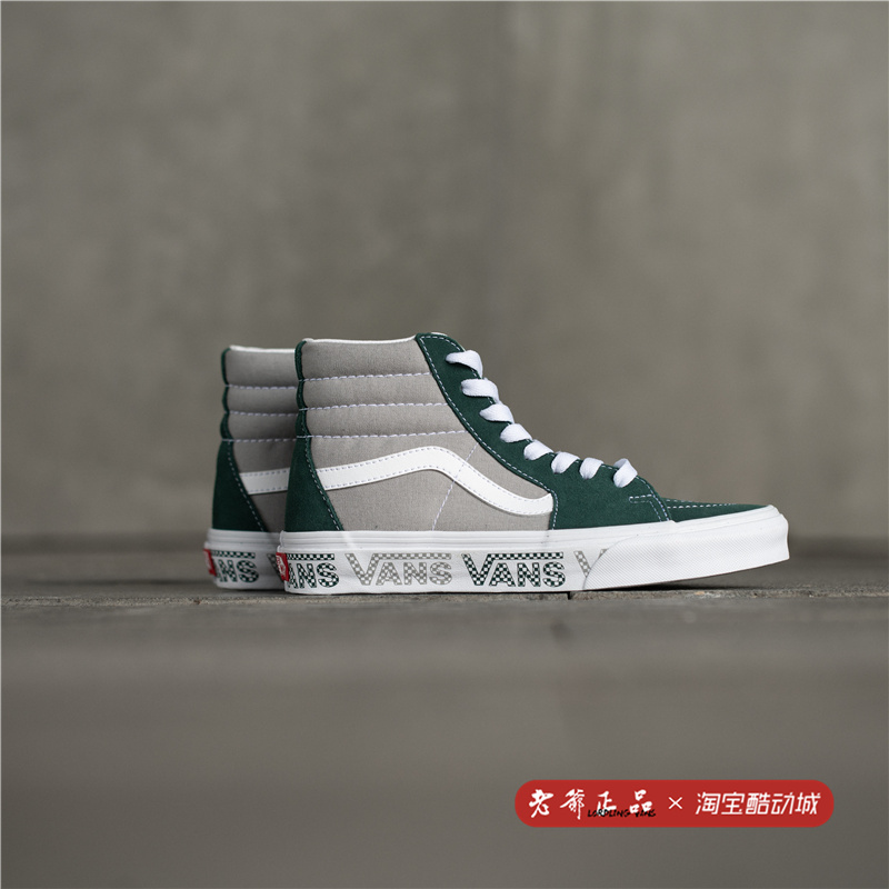 VN0A4BV6X0P Hi灰绿拼接高帮字母男女情侣休闲帆布鞋 VANS SK8