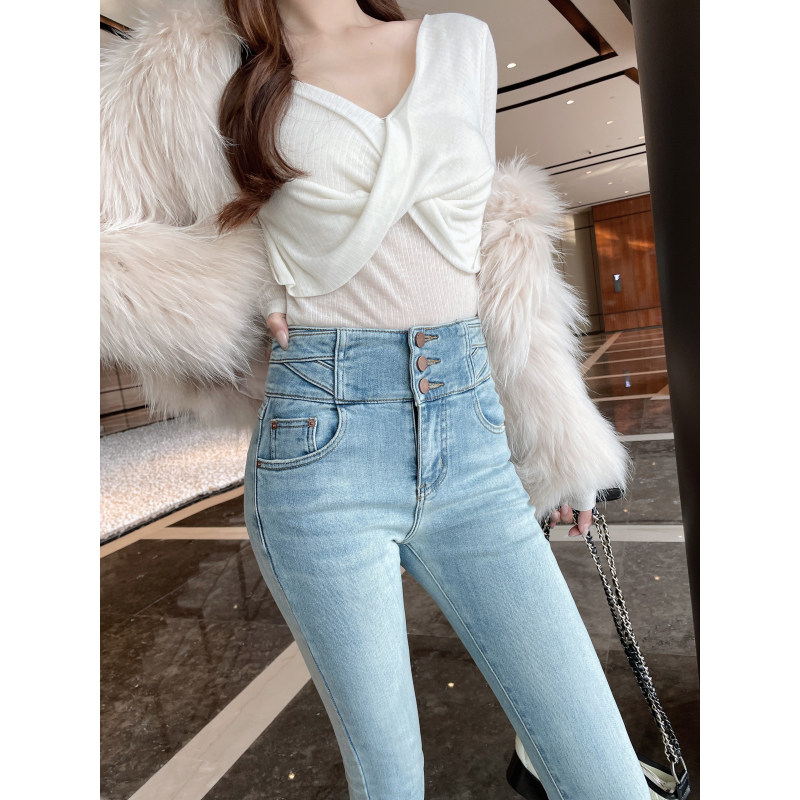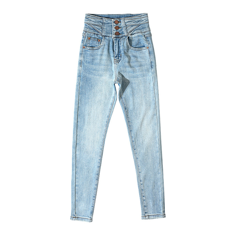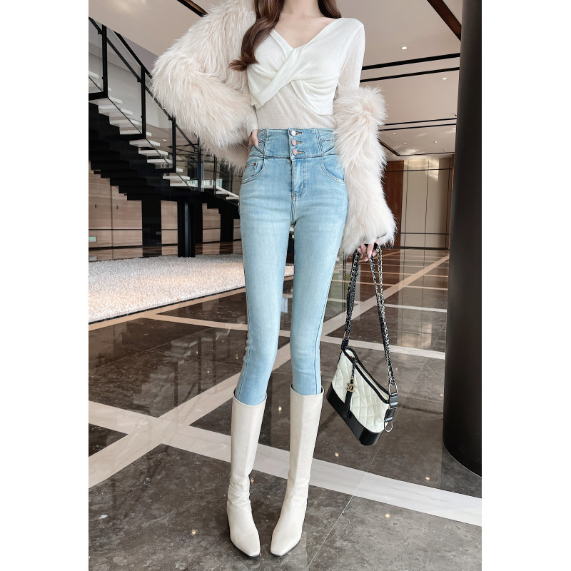 超高腰收腹提臀显瘦铅笔裤 新款 女2024年春季 浅蓝色紧身小脚牛仔裤