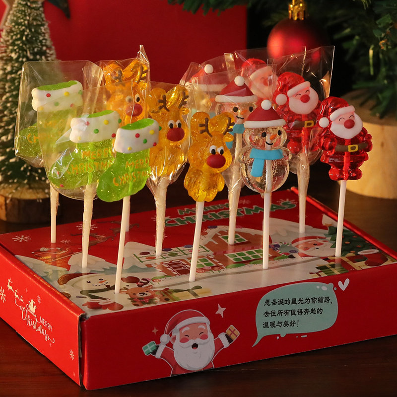 新年过年货圣诞节卡通棒棒糖硬糖果礼盒装 儿童可爱创意礼物零食糖