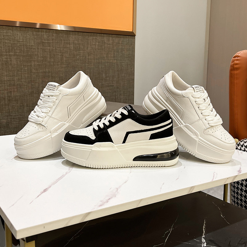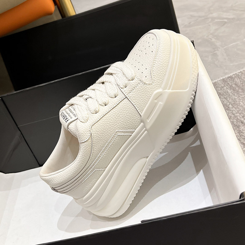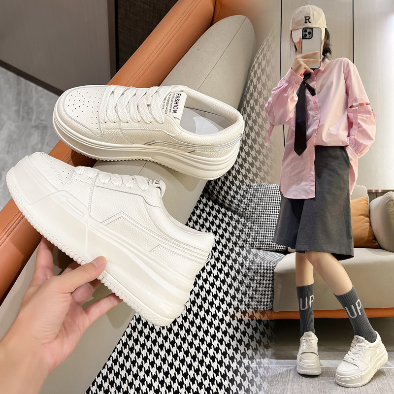 女2025年春季 休闲板鞋 新款 百搭厚底松糕运动鞋 增高女鞋 真皮小白鞋